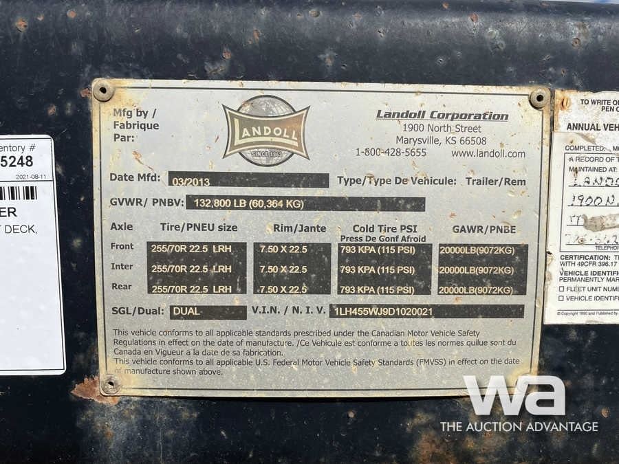 2013 LANDOLL 455 TRIDEM TILT DECK TRAILER