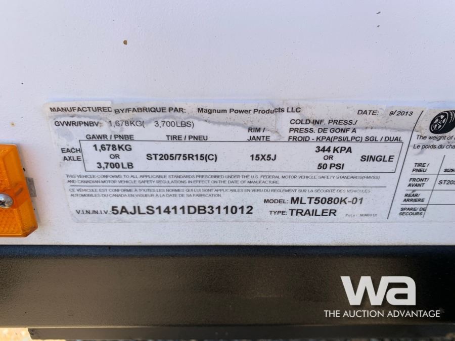 METER: 15105 HRS, DSL, SN:1311012, TRAILER VIN:5AJLS1411DB311012
