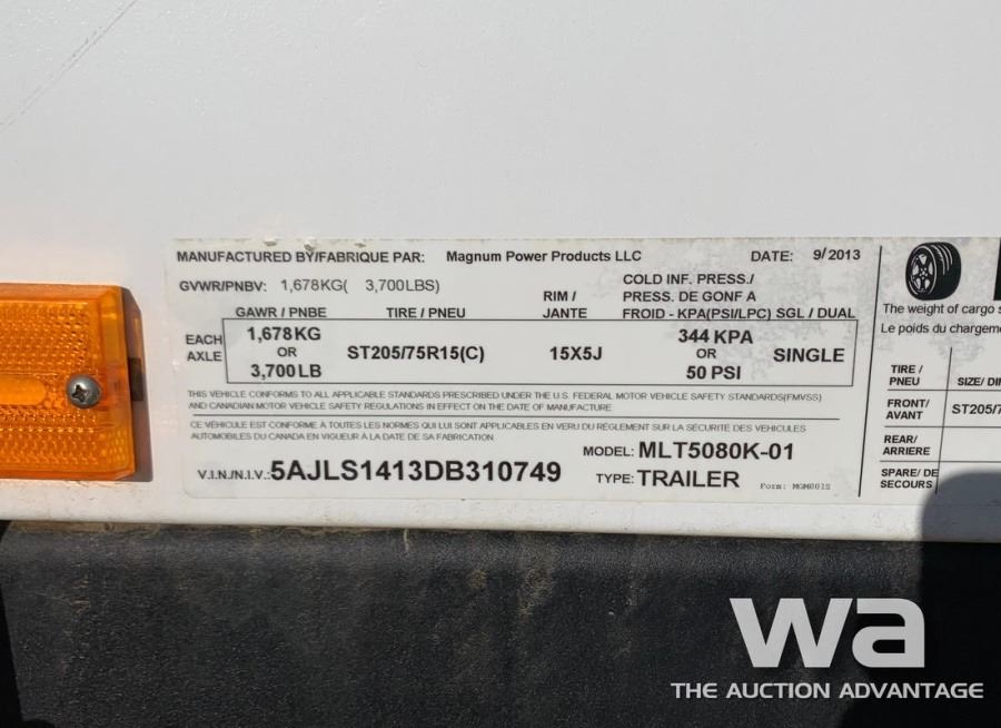 METER: 14,713 HRS, DIESEL, (4) LIGHTS, SN:1310749, TRAILER VIN: 5AJLS1413DB310749