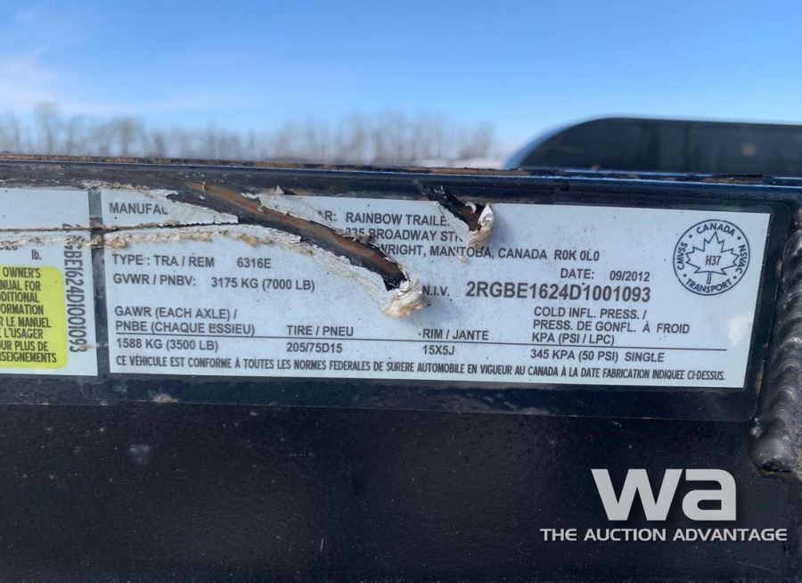BLACK, 205-75R15 TIRES, 10,000LB WINCH, RAMPS SIZE: 16 FT. VIN: 2RGBE1624D1001093 *PREVIOUSLY AB REGISTERED *Key for winch in Main Office.