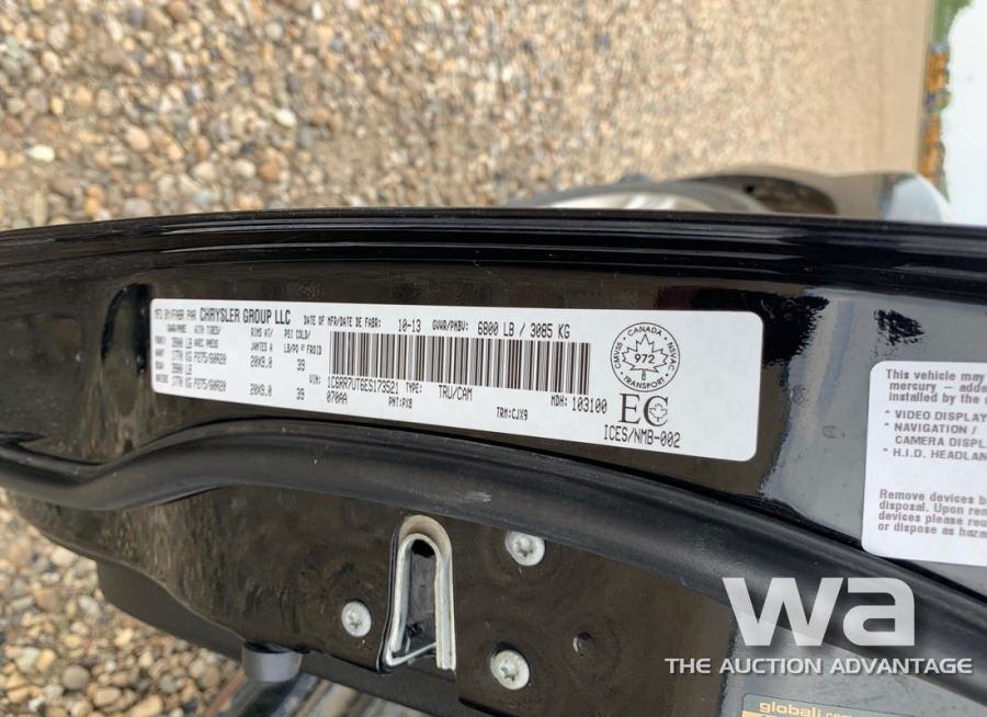 ODOMETER: 229,644 KM ENGINE: 5.7L GAS TRANSMISSION: AUTOMATIC DRIVE TYPE: 4WD COLOR: BLACK VIN: 1C6RR7UT6ES173521 *AB REGISTERED *KEYS:_____*