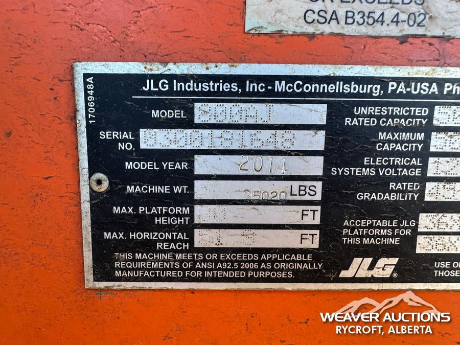 Specifications: 80 FT MAX LIFT HEIGHT, 500 LB MAX WEIGHT CAPACITY, JIB, HYDRAULIC LEVELING, POWER TO PLATFORM, DEUTZ TD2.9L4 4 CYLINDER 67 HP 2.9 L DIESEL ENGINE, 15-625 FOAM-FILLED TIRES
