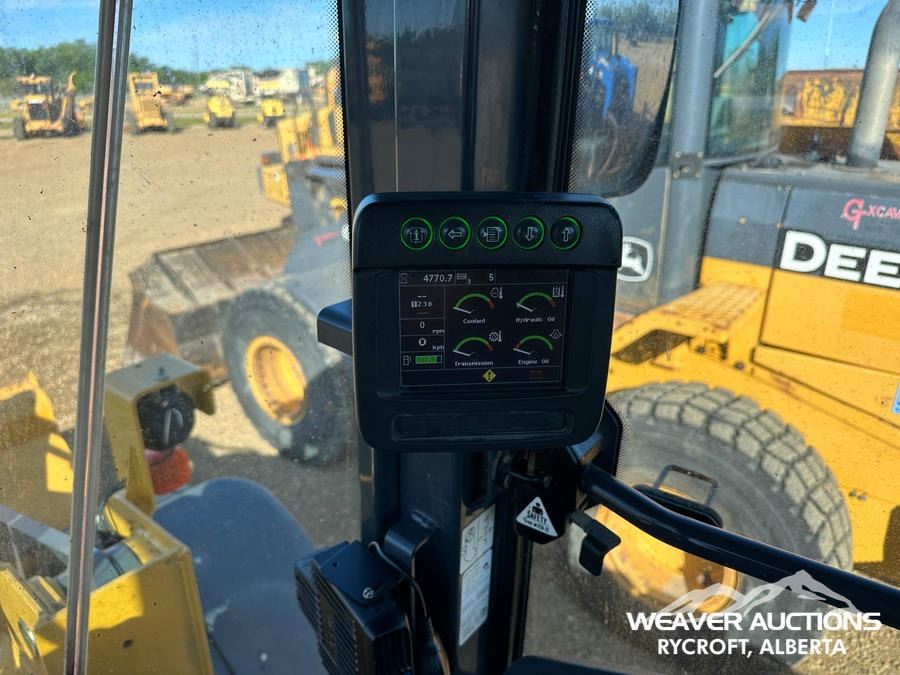 Specifications: ENCLOSED CAB, A/C, QUICK ATTACH, 3 YARD BUCKET, 20.5R25 TIRES