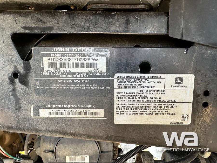 2014 JOHN DEERE XUV 625i GATOR SIDE BY SIDE