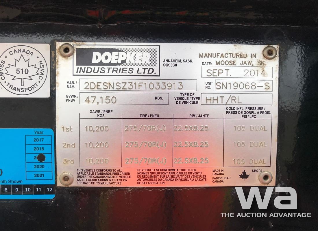 BLACK, 11 FT. NECK, 10’ WIDE, A/R, LIVE REAR ROLL, KICKER ROLLS, FLIP OVER B. TAIL, 275/70R22.5 TIRES, ALUM RIMS, VIN:2DESNSZ31F1033913, *AB REGISTERED, *CVIC INSPECTION DATE: 03MAY2018