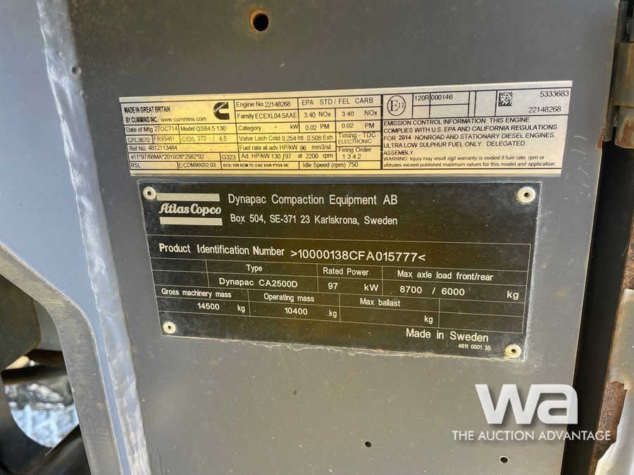 2015 Dynapac CA2500D Vibratory Packer
