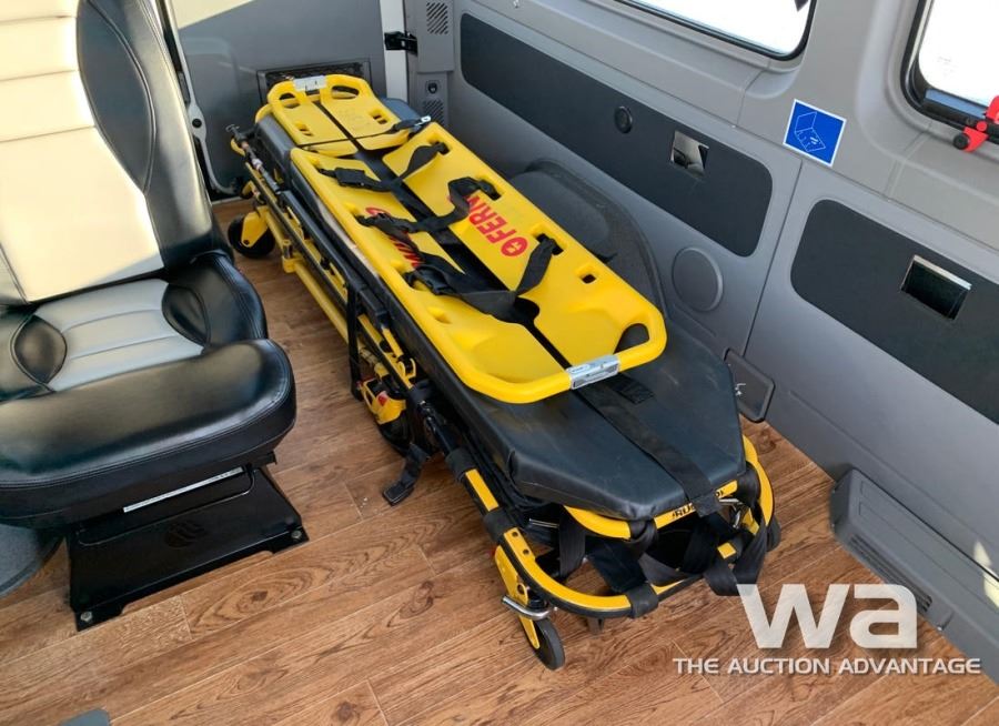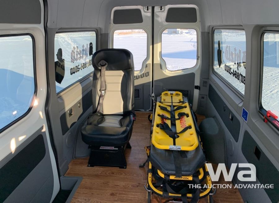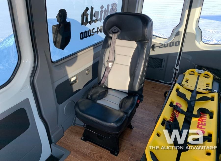 ODOMETER: 34,924 KM, DIESEL, AUTOMATIC, 4WD, WHITE, WHITE, 3.0L V6 DSL., AUTO, HEATED SEATS, SLIDE OUT SIDE STEP, REAR CAMERA, ROLL AWAY STRETCHER, FERNO SCOOP, 3 POINT HARNESS ATTENDANT SEAT, EMERGENCY PATIENT TRANSPORT BED, 12 PASSENGER SEATS INCLUDED & NEW FLOORS, RECEIVER HITCH, PRO HEAT, UNIT: 401 VIN:WDZCE7CC1FP116322, *AB REGISTERED