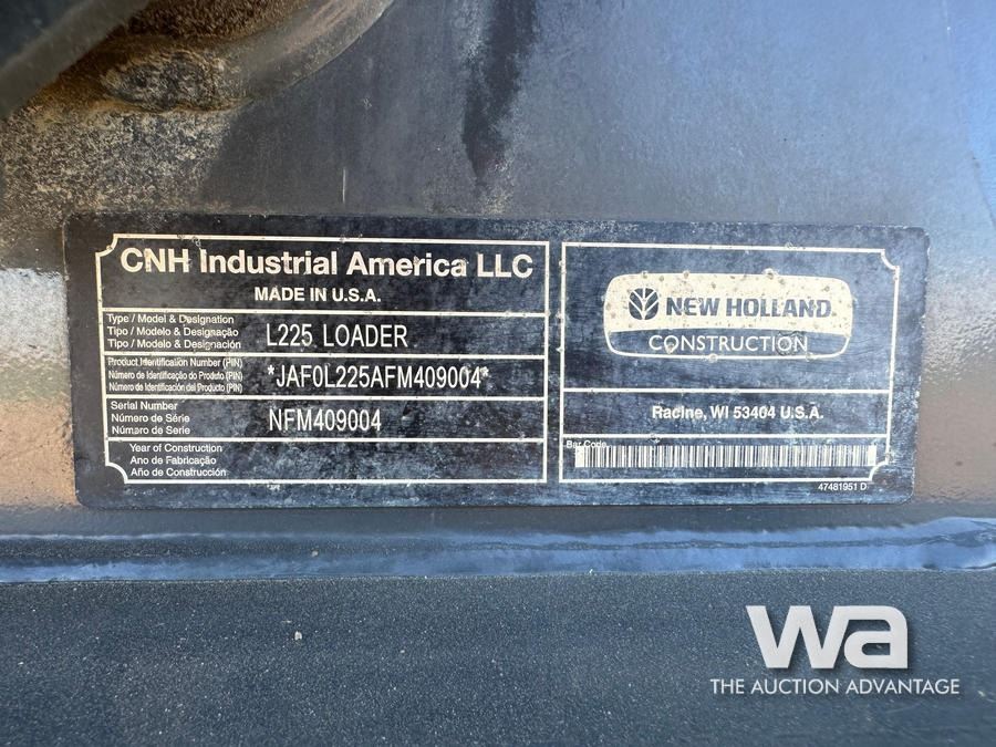 2015 NEW HOLLAND L225 2 SPEED SKID STEER LOADER