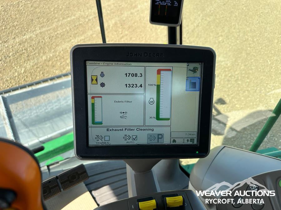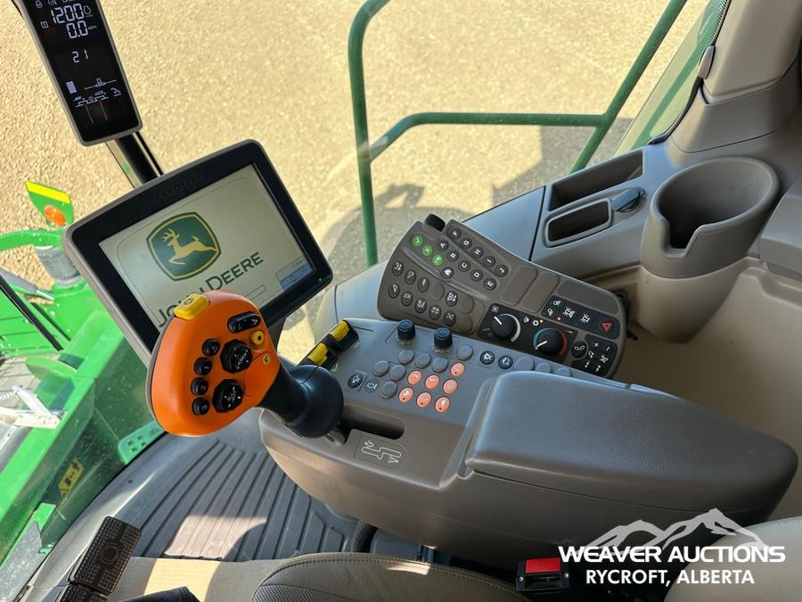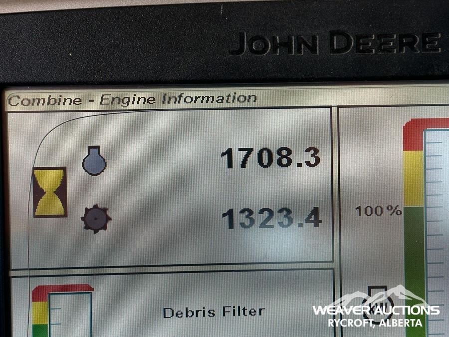 Specifications: AIR CONDITIONER, HYDROSTATIC DRIVE, REVERSER, VARIABLE SPEED REEL, AUTO HEADER HEIGHT CONTROL, FORE & AFT, YIELD & MOISTURE SENSOR, LATERAL TILIT, GS3 2630 DISPLAY, AUTOTRAC SF1 ACTIVATION, JOHN DEERE 615P PICKUP, ROCK TRAP, SINGLE ROTOR, POWER FOLDING, GRAIN TANK EXTENSIONS, CHAFF SPREADER, REDEKOP MAV FINE CUT CHOPPER, 5 SPEED GEAR BOX, HARD FACED INTERNAL SPEC, COPPER HEAD CONCAVES, ALSO COMES WITH LARGE WIRE AND SMALL WIRE CONCAVES
