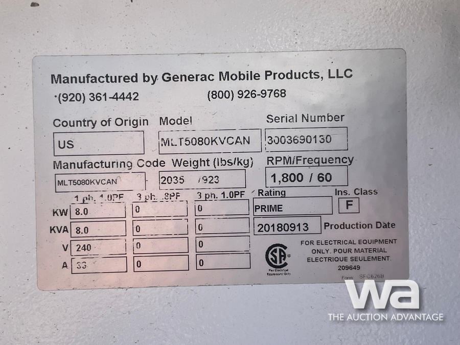 2018 GENERAC MLT5080KV 8 KW LIGHT TOWER