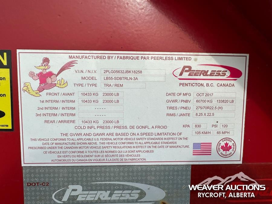 2018 PEERLESS LB55-SDBTRLN-3A SINGLE DROP LOWBED