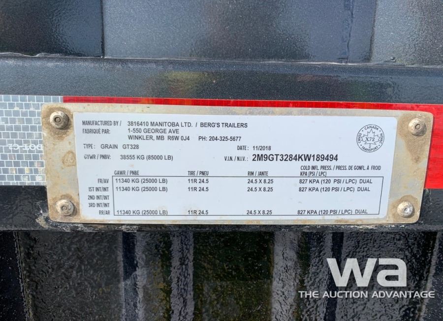 SOLD WITH: 2019 BERGS GT230 SUPER B-TRAIN PUP GRAIN TRAILER