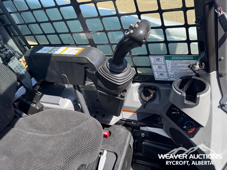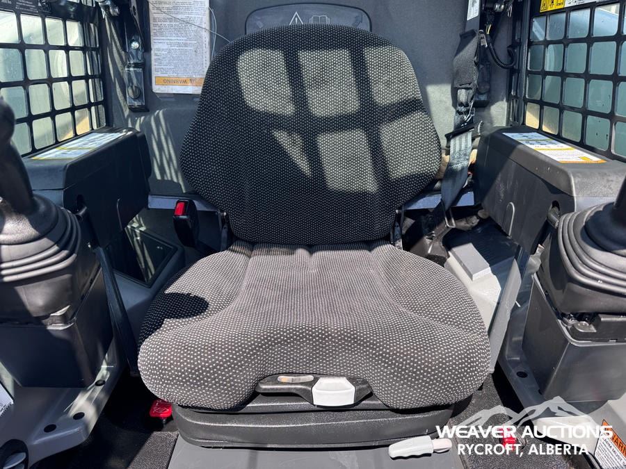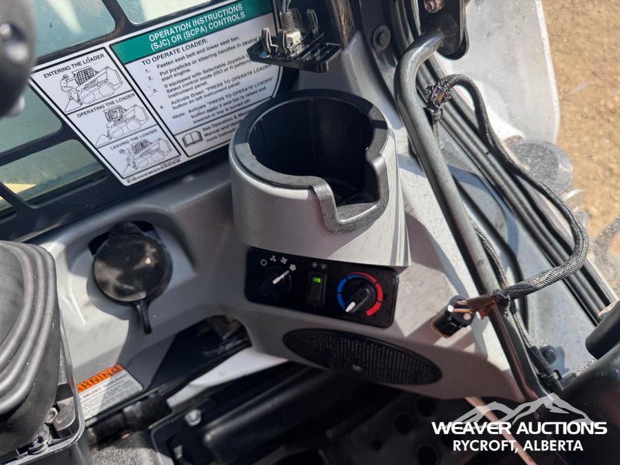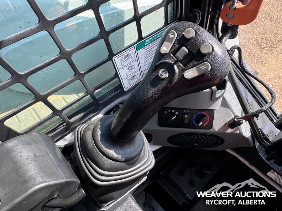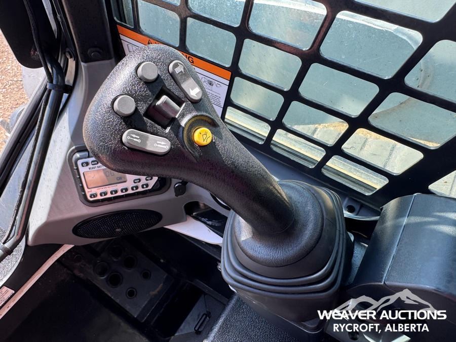 Specifications: ENCLOSED CAB, AIR CONDITIONER, AIR RIDE SEAT, JOYSTICK STEERING, 17.5 IN TRACK BELTS, HIGH FLOW HYDRAULICS, MANUAL Q/C