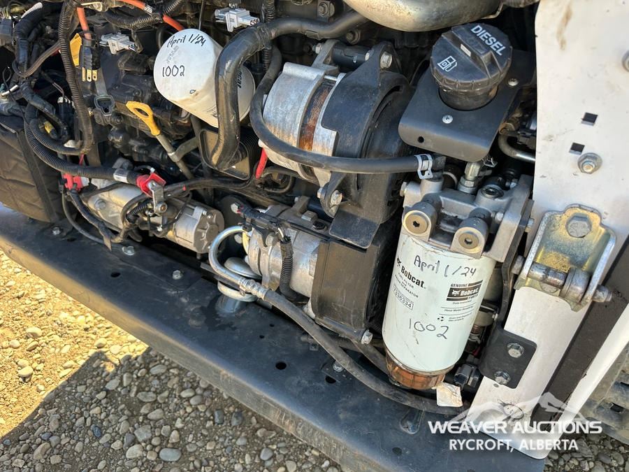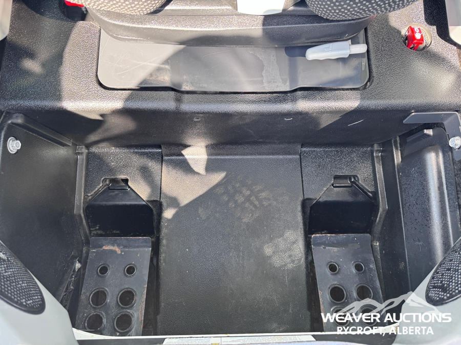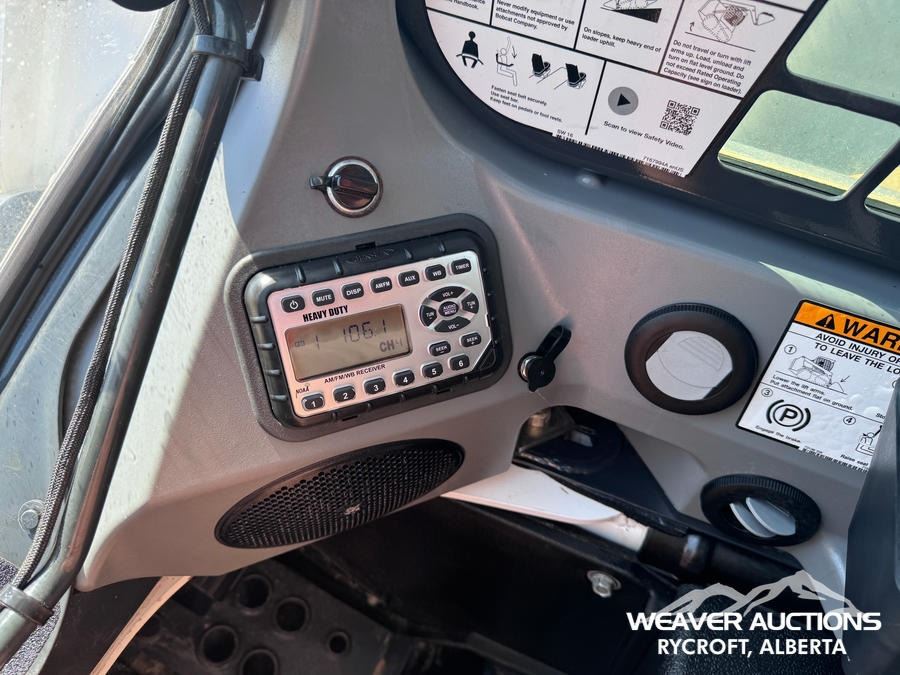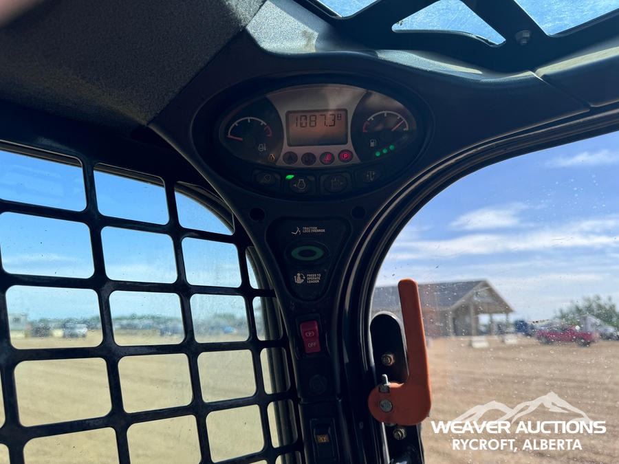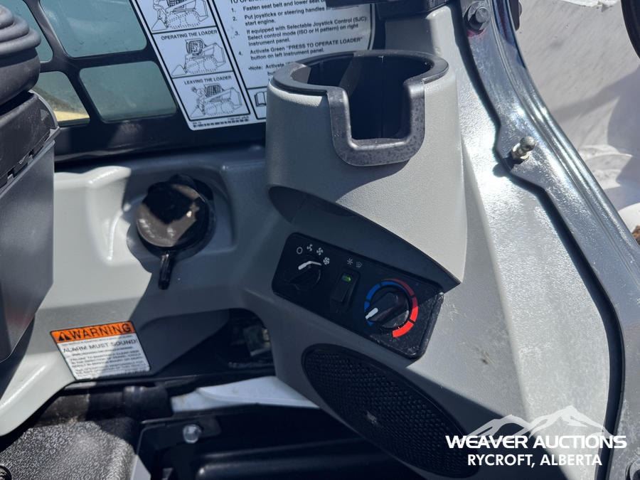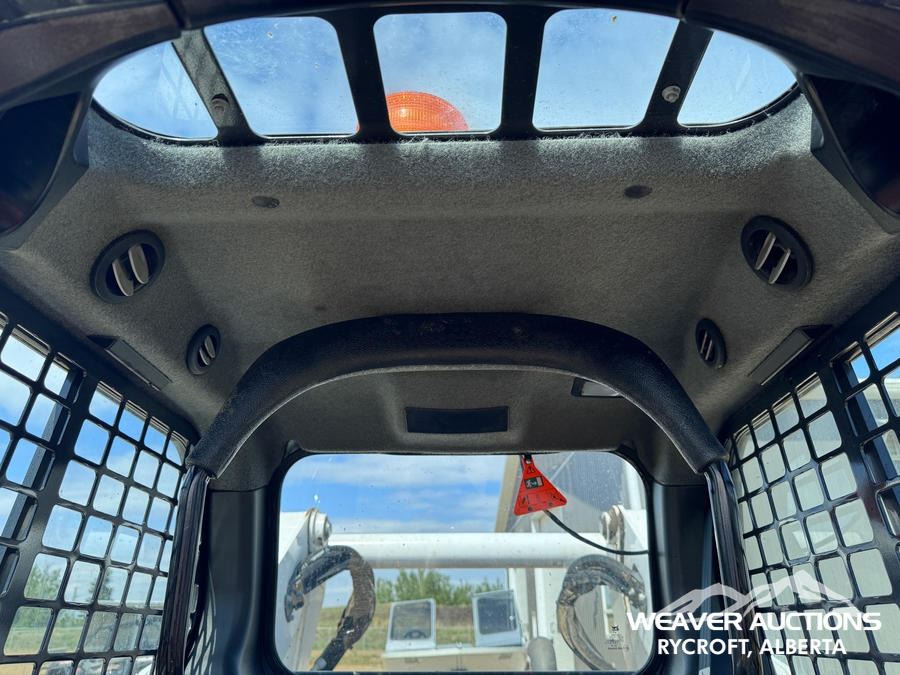 Specifications: ENCLOSED CAB, AIR CONDITIONER, AIR RIDE SEAT, JOYSTICK STEERING, 17.5 IN TRACK BELTS, HIGH FLOW HYDRAULICS, MANUAL Q/C