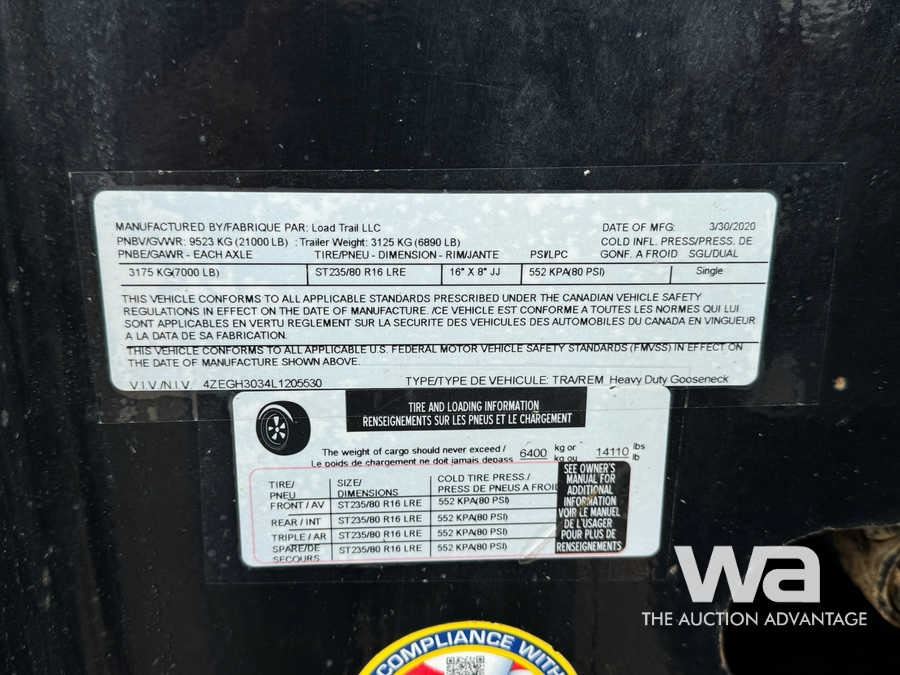 2020 LOADTRAIL TRIDEM 5TH WHEEL EQUIPMENT TRAILER