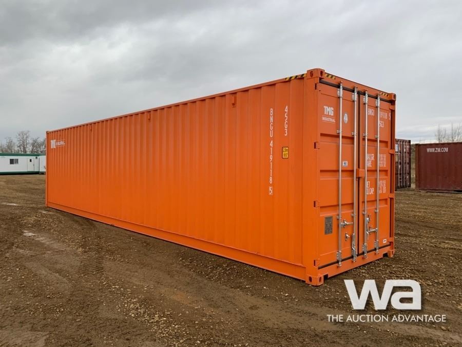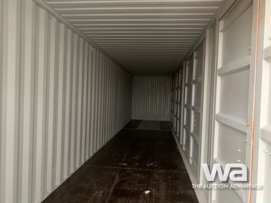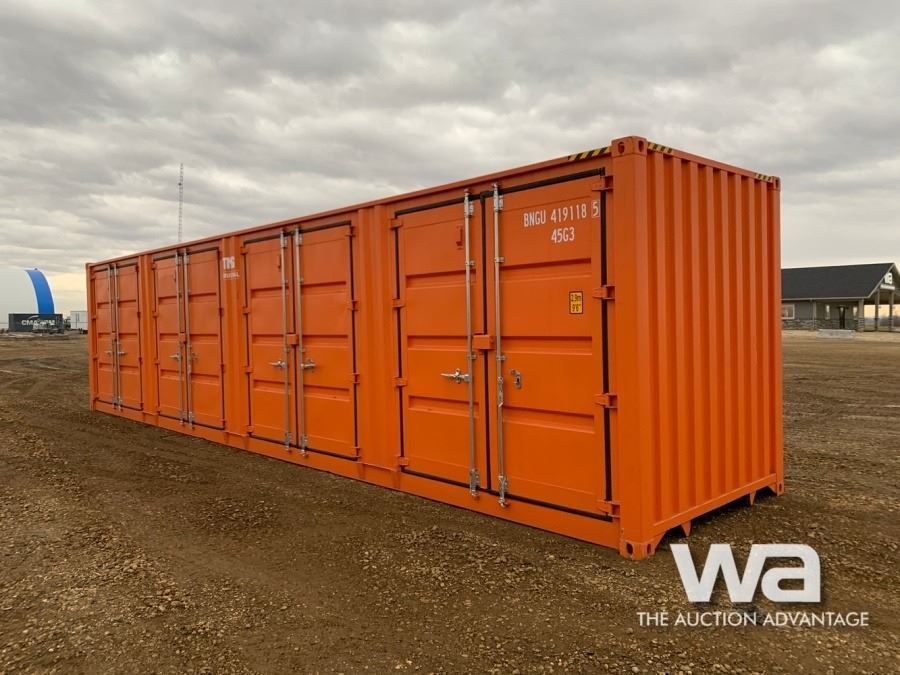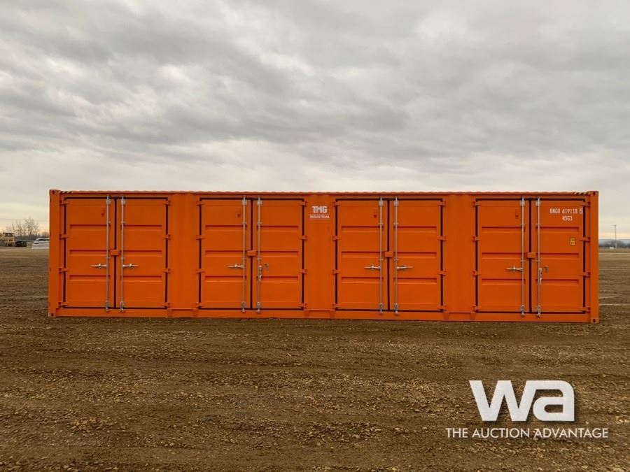 FULL SIDE OPEN DOOR SHIPPING CONTAINER, C/W: FORKLIFT POCKETS, ORANGE, SN: BNGU4191185