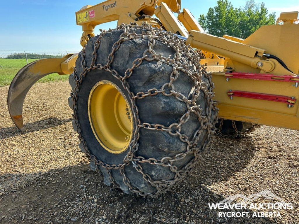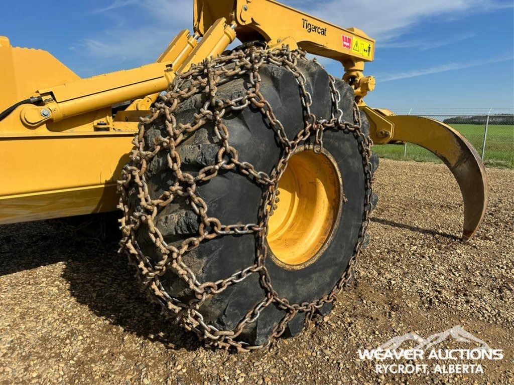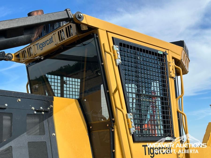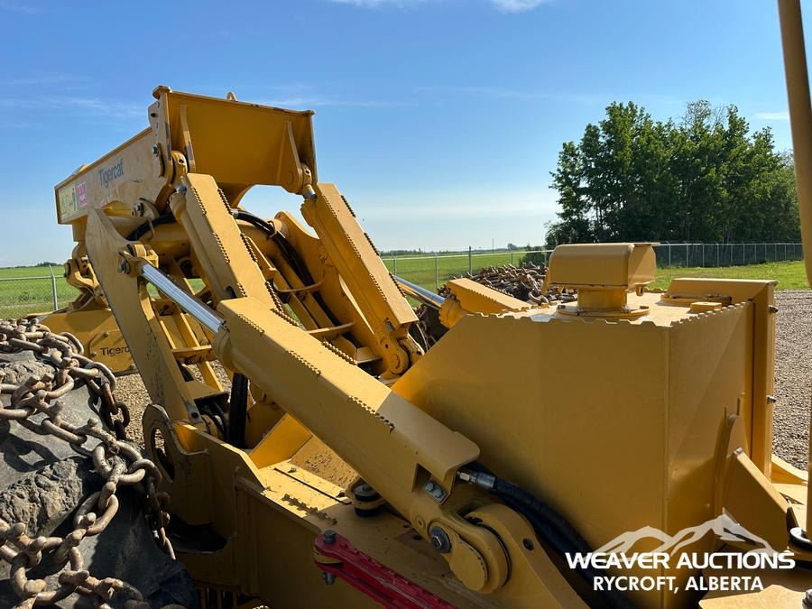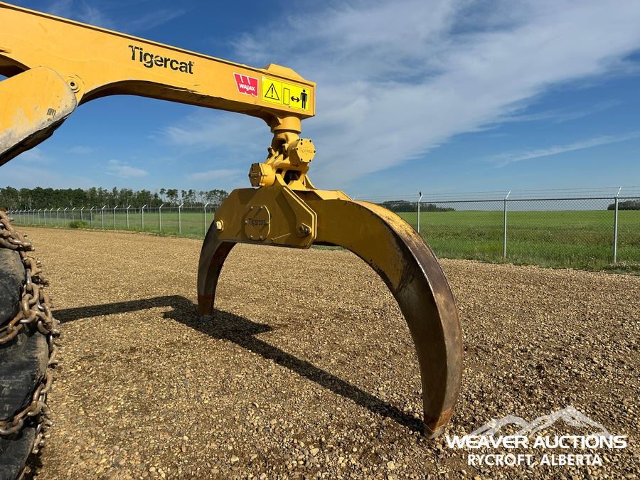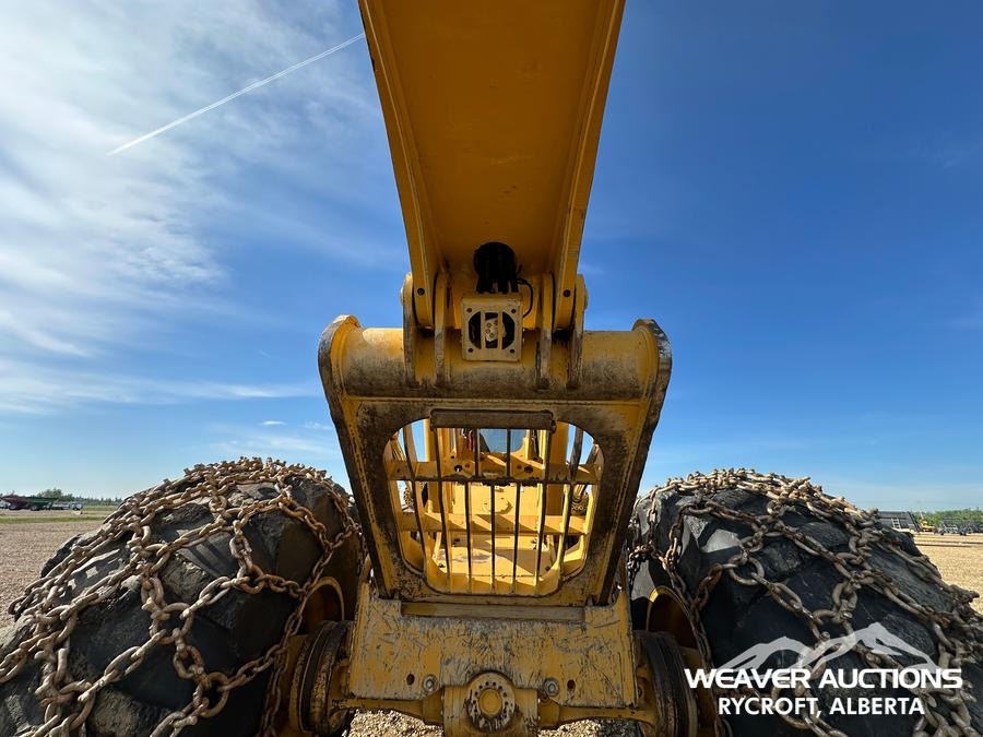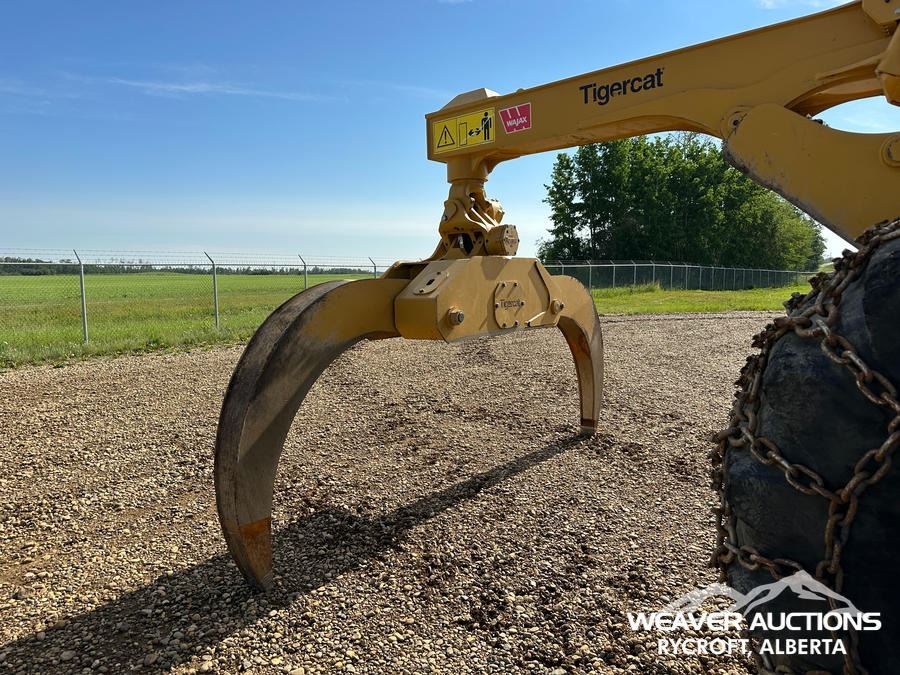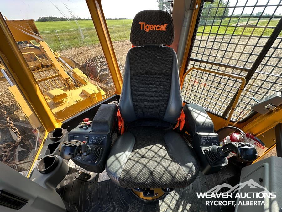 Specifications: AIR CONDITIONER, JOYSTICK STEERING, AIR RIDE SEAT, SWEEPS, SCREENS, TWO-POSITION STATION, EBERSPACHER ENGINE COOLANT HEATER, BLADE, TIGERCAT GRAPPLE, DOUBLE ARCH, 35.5X32 TIRES W/1 PAIR OF CHAINS