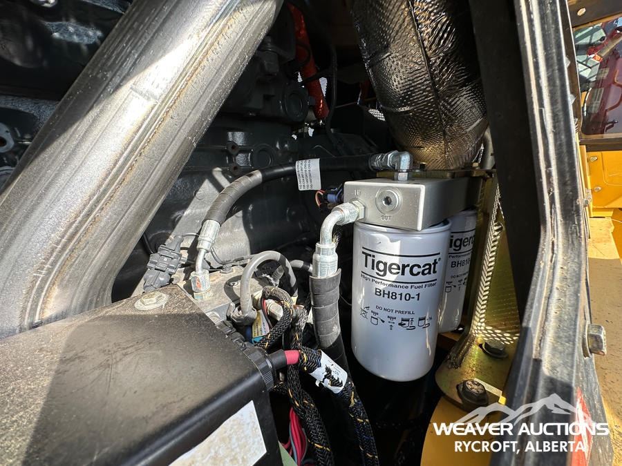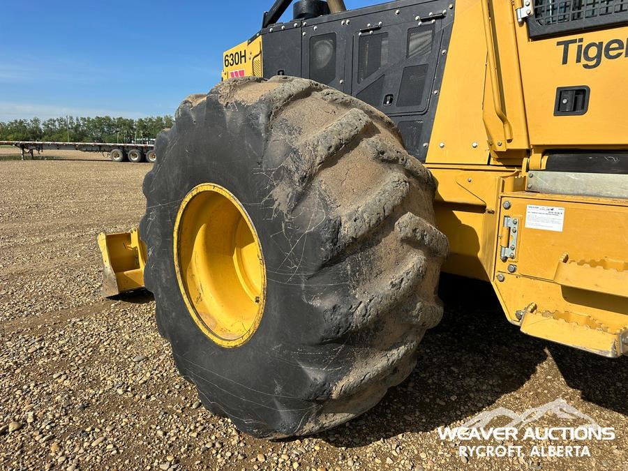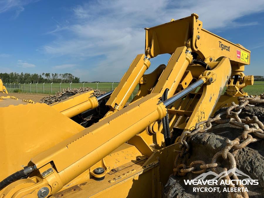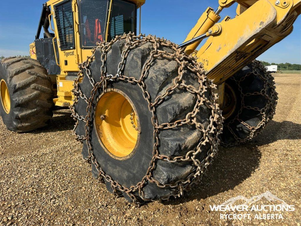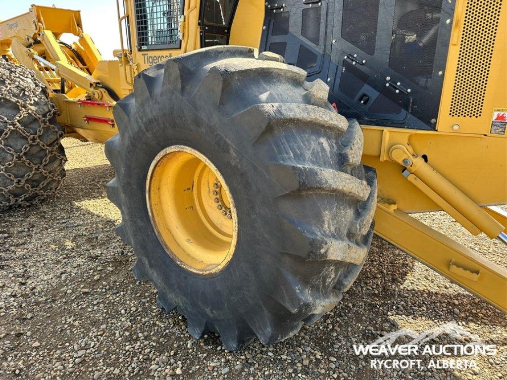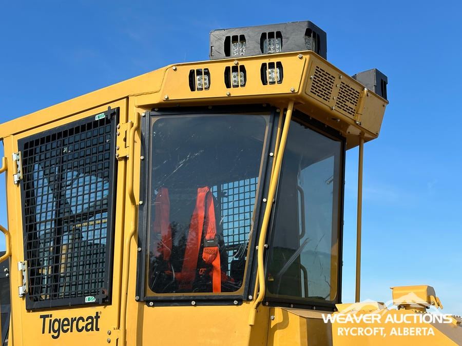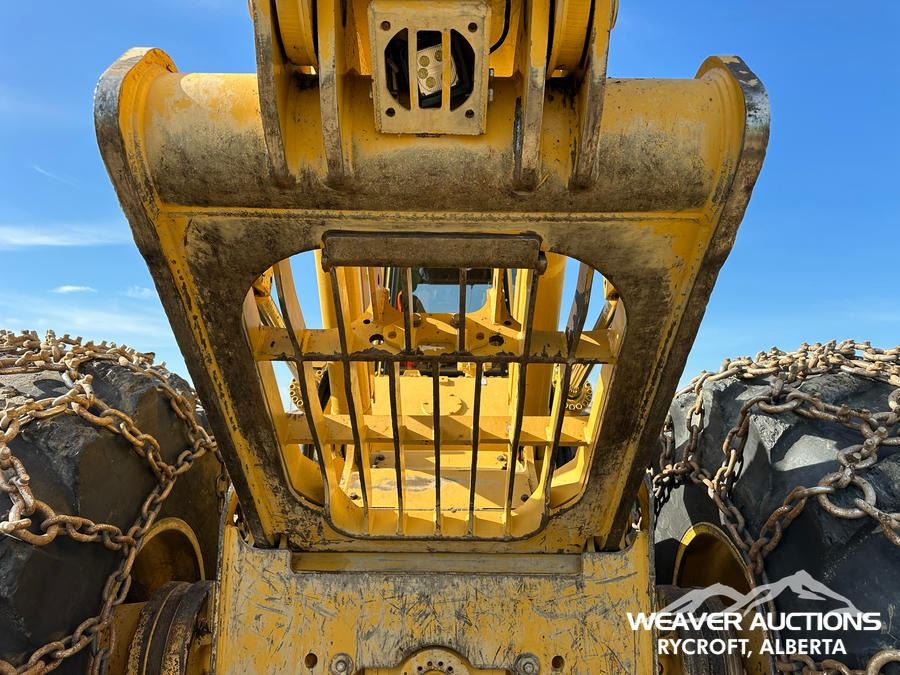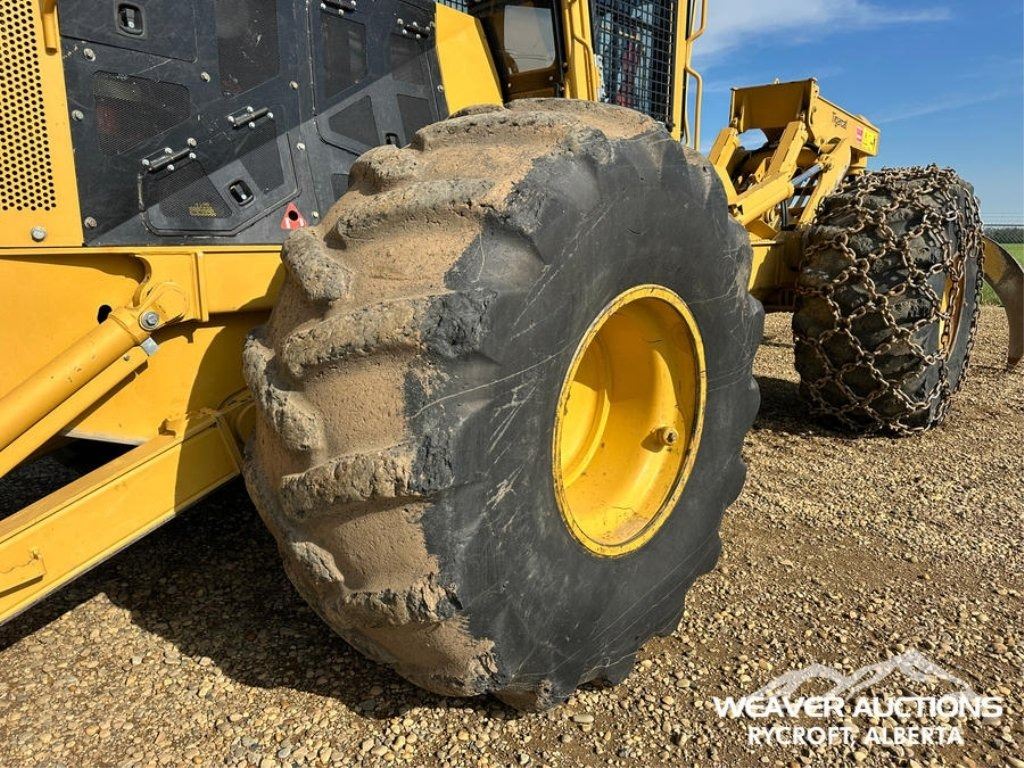 Specifications: AIR CONDITIONER, JOYSTICK STEERING, AIR RIDE SEAT, SWEEPS, SCREENS, TWO-POSITION STATION, EBERSPACHER ENGINE COOLANT HEATER, BLADE, TIGERCAT GRAPPLE, DOUBLE ARCH, 35.5X32 TIRES W/1 PAIR OF CHAINS