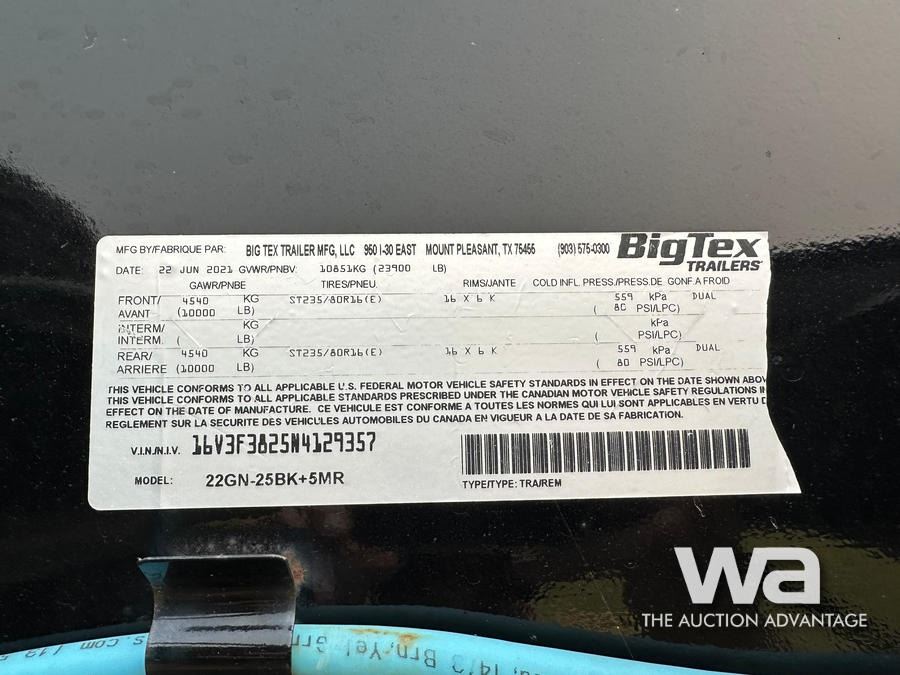 2022 BIGTEX 22GN 25FT T/A DUALLY EQUIPMENT TRAILER