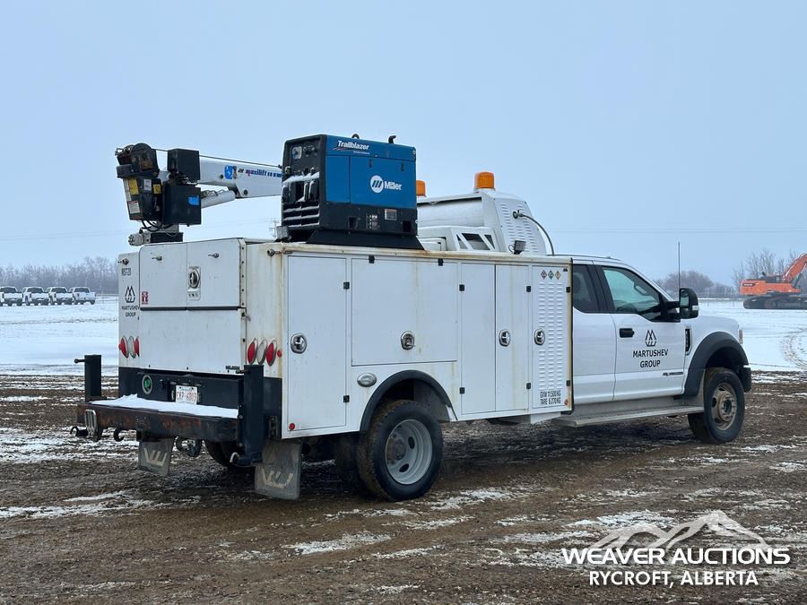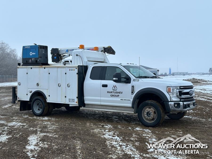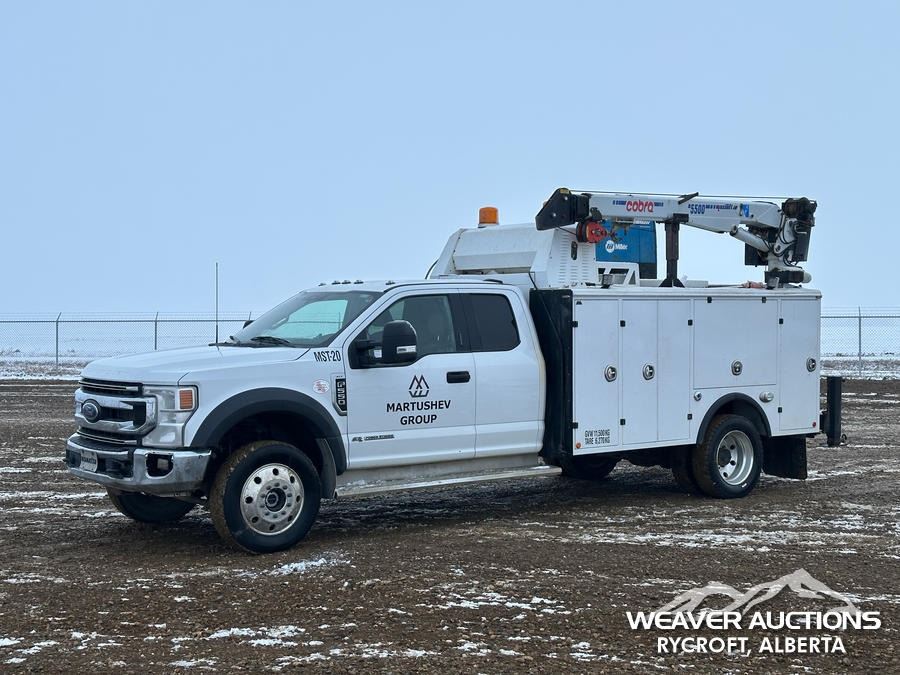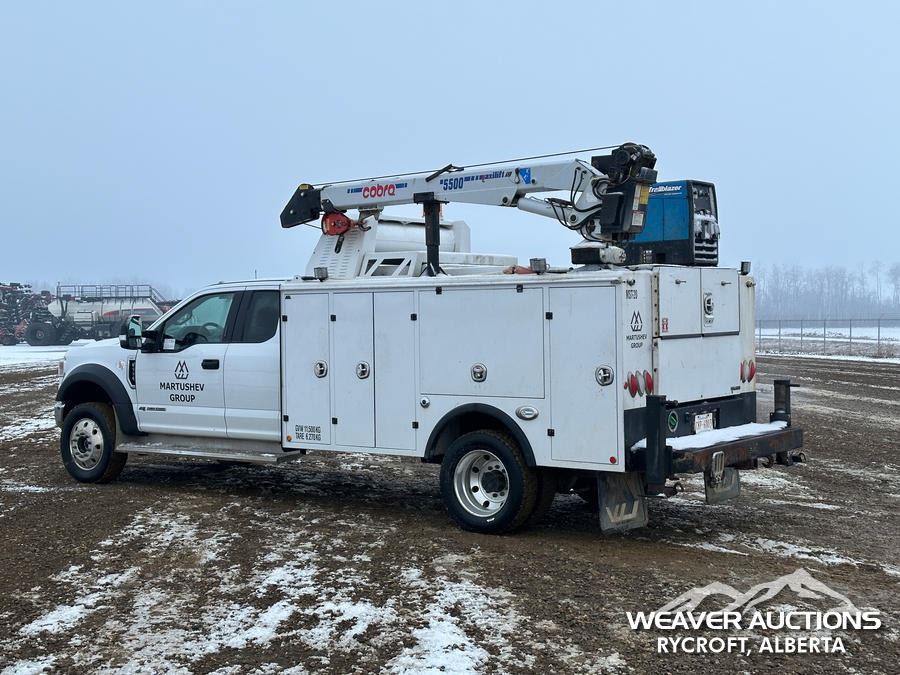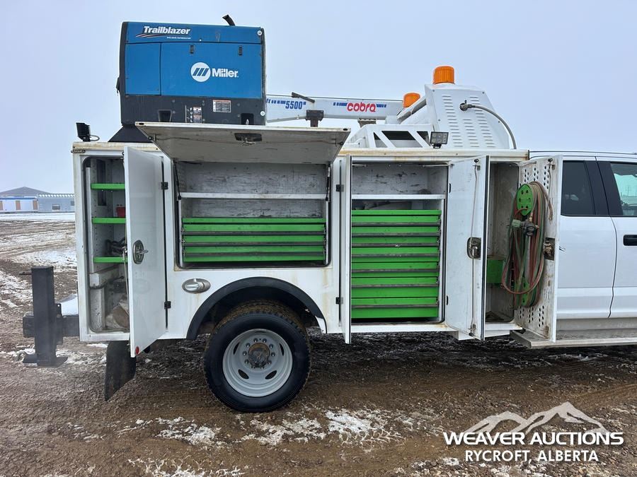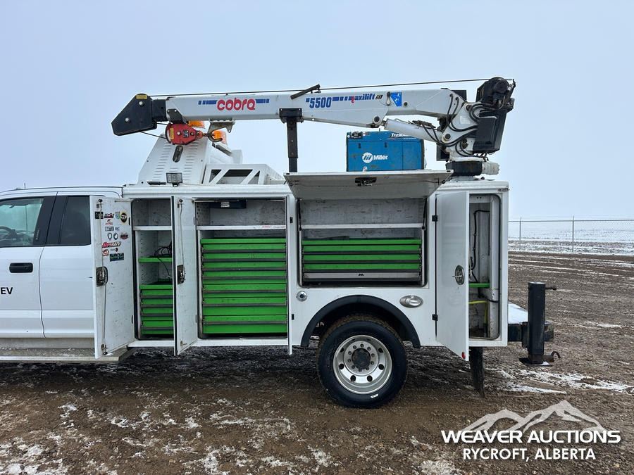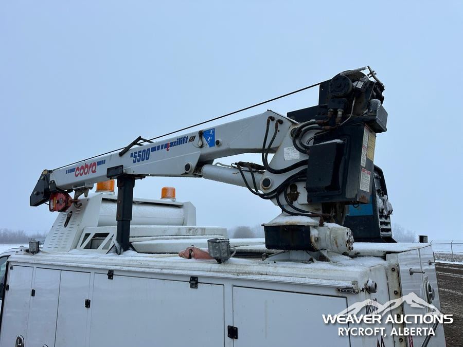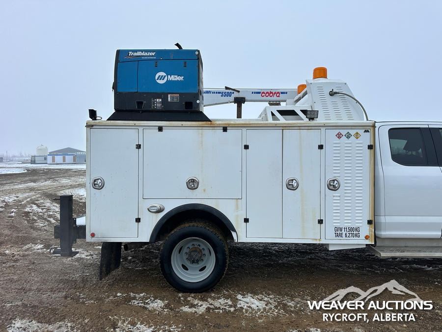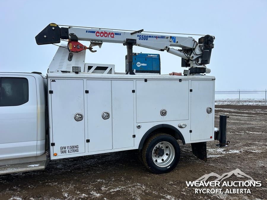 Specifications: 7,000 LB FRONT AXLE, 14,760 LB REARS, 19,500 LB GVWR, ALUMINUM WHEELS, 225/70R19.5, SPRING SUSPENSION, 2021 MILRON BODY, MANUAL STABILIZERS, 2021 COBRA MAXILIFT 5500 RS E 3 SECTION HYDRAULIC CRANE, MILLER TRAILBLAZER 32 EFI