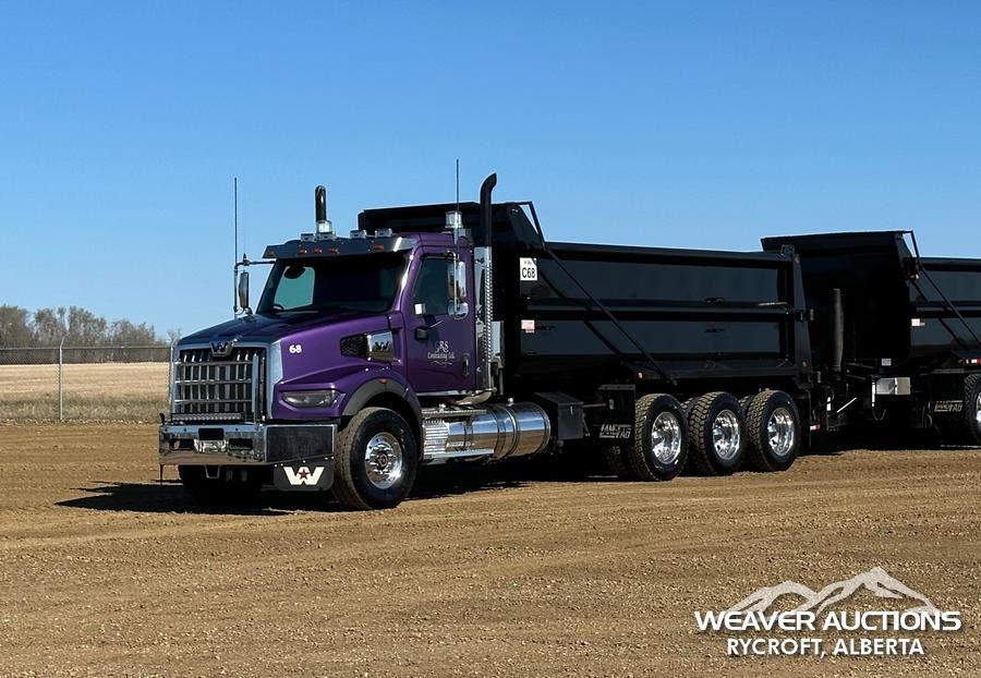 Specifications: DETROIT DD16 600 HP ENGINE, US EPA LABEL, REQUIRES DIESEL EXHAUST FLUID, 3,350 HRS. ENGINE HRS, AIR CONDITIONER, CRUISE CONTROL, POWER WINDOWS, ENGINE BRAKE, DIFFERENTIAL LOCK, 20000 LB FRONT AXLE, MERITOR RZ-69-166 REARS, 4.30:1 AXLE RATIO, 86000 LB GVWR, AIR RIDE CAB, ALUMINUM WHEELS, 425/65R22.5 FRONT TIRES, 11R22.5 REAR TIRES, DUAL STEERING BOXES, AIR RIDE SUSPENSION, 267 IN WHEELBASE, PTO, 2023 LANGFAB 21 FT. LONG X 65 IN. HIGH BODY, STEEL DUMP BODY, VIBRATOR BOX, ELECTRIC ROLL TARP, REAR HYDRAULICS, PINTLE HITCH