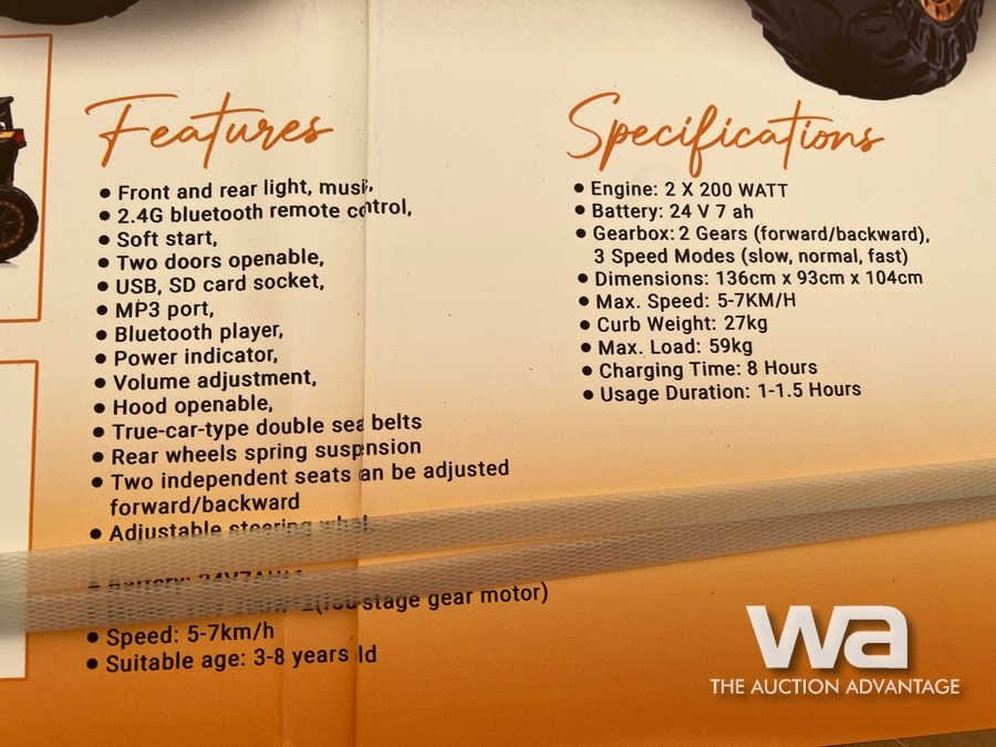 Specifications: *Un-used, C/W Remote Control, 5-7 KM/H, Golden