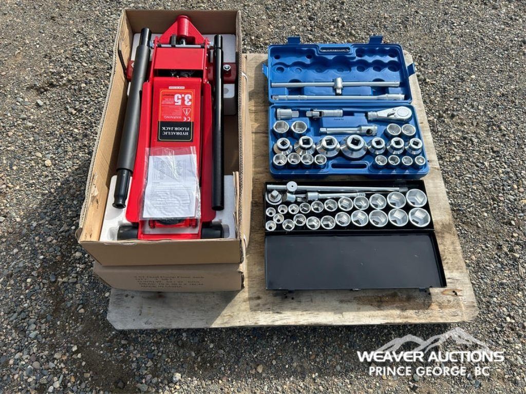 Specifications: *UNUSED, 3.5T DUAL PUMP FLOOR JACKS, (2) 27 PC 3/4 DRIVE SOCKET SET, 26 PC 3/4-1 IN. DRIVE SOCKET SET