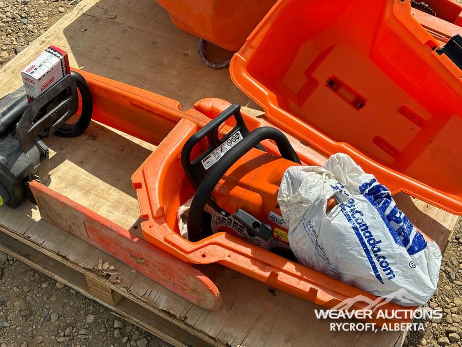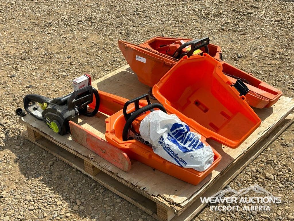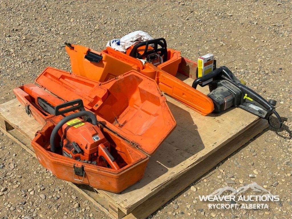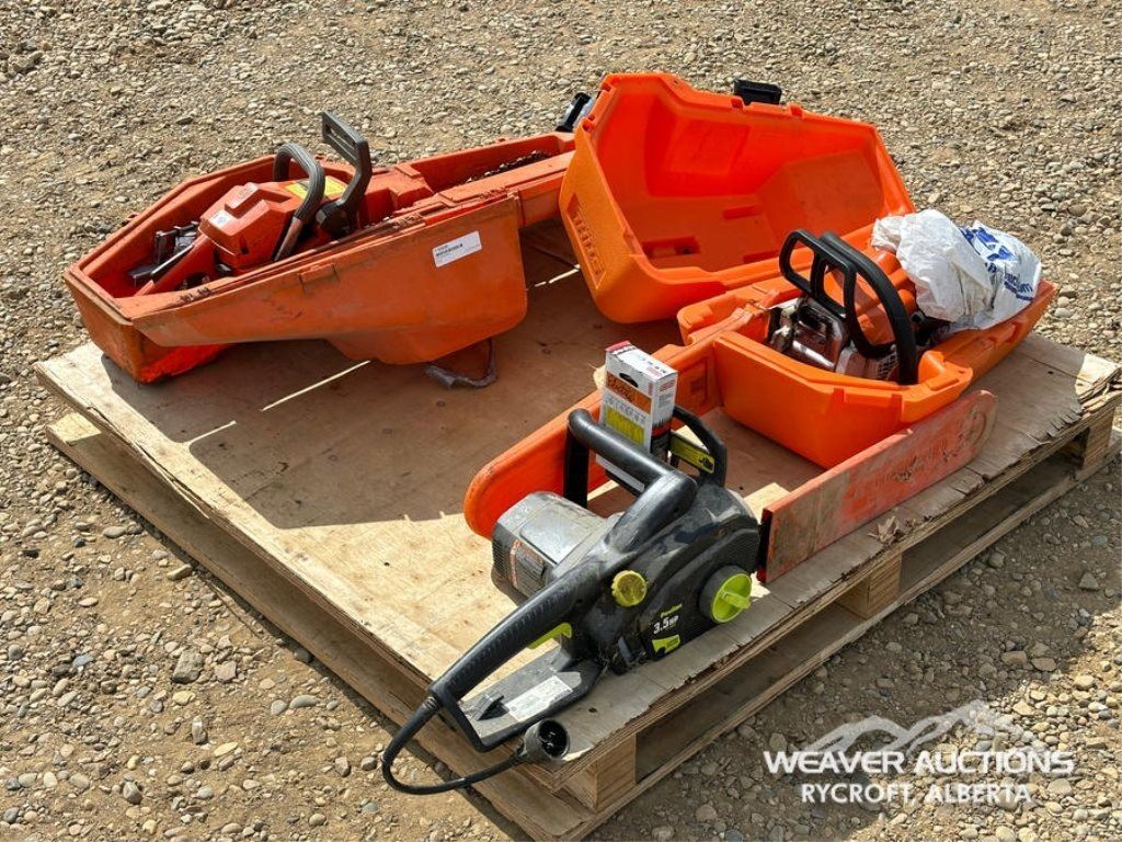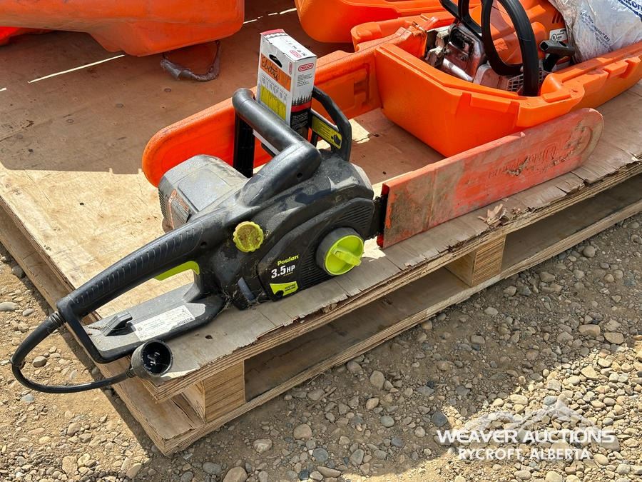 Specifications: (1) POULAN 3.5 HP ELECTRIC CHAINSAW, (1) STIHL GAS CHAINSAW, (1) HUSQVARNA GAS CHAINSAW