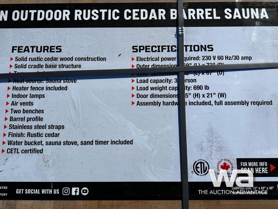 3 Person Outdoor Rustic Cedar Barrel Sauna