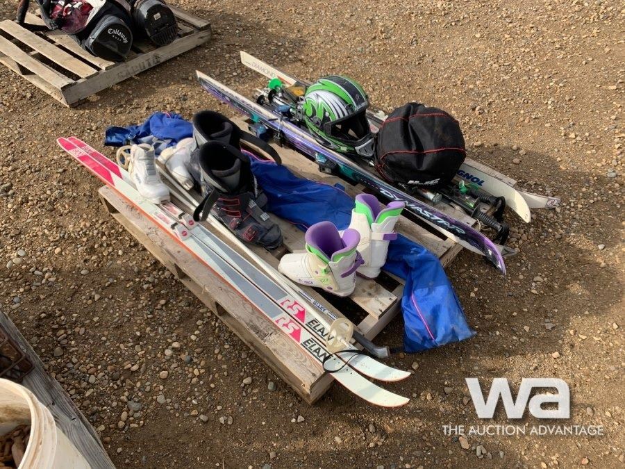(3) SKIS W/ BOOTS, (2) HELMENTS