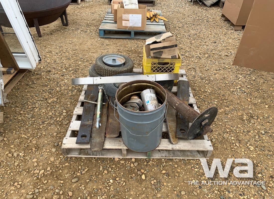 MOWER BLADES, PAIL OF MISCELLANEOUS