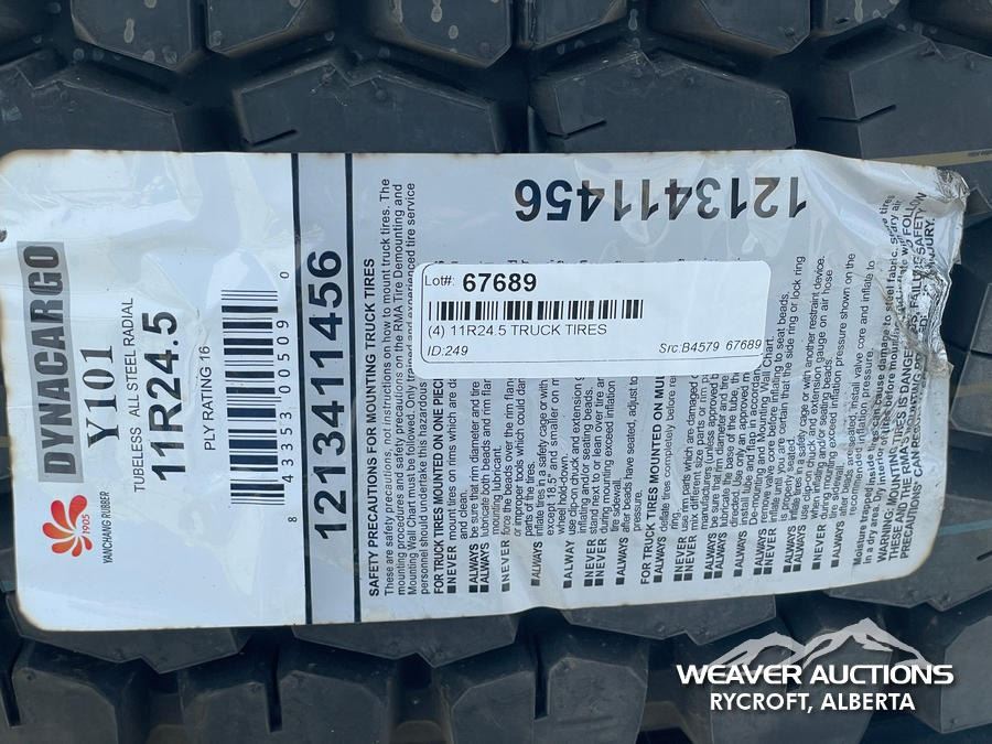 Specifications: (3) DYNACARGO 11R24.5 TIRES, (1) KAPSEN 11R24.5 TIRE