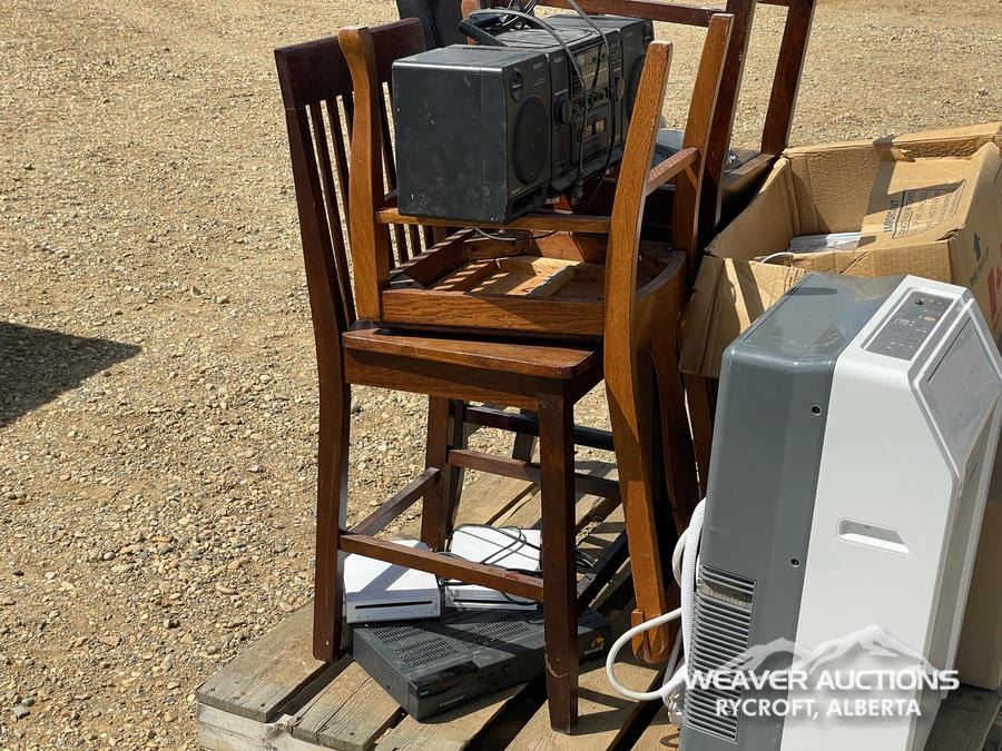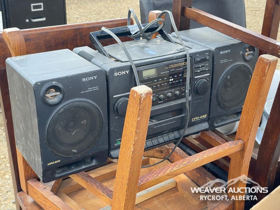 Specifications: (3) BAR HEIGHT CHAIRS & (1) STANDARD HEIGHT CHAIR, SONY SOUND SYSTEM, CHRISTMAS DECORATIONS