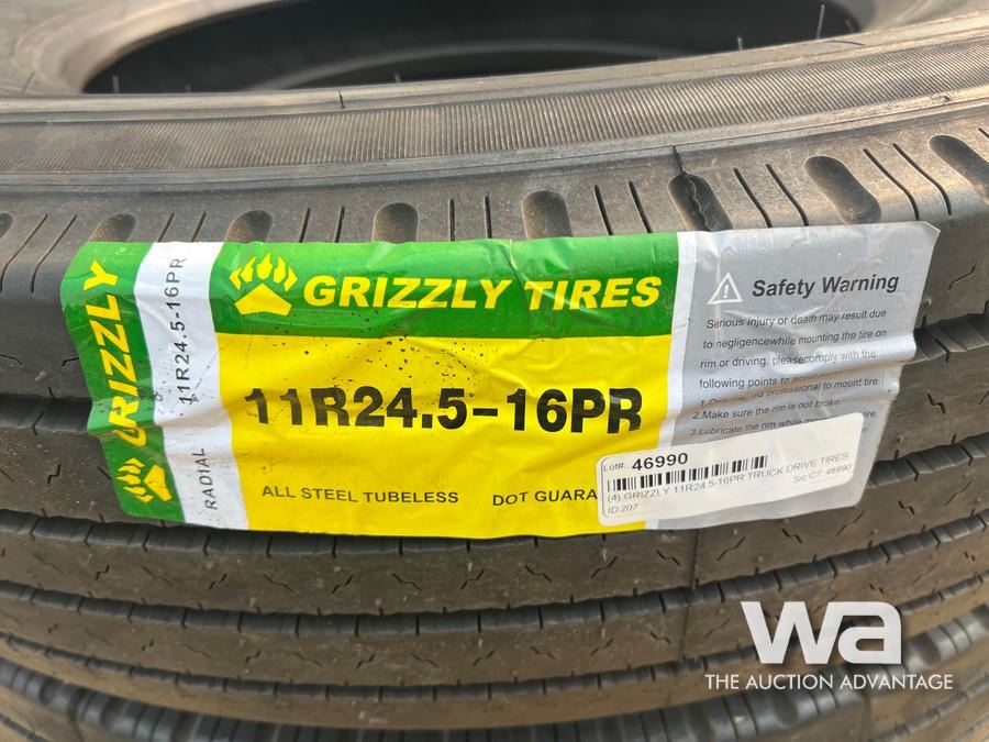(4) GRIZZLY 11R24.5-16PR TRUCK TIRES