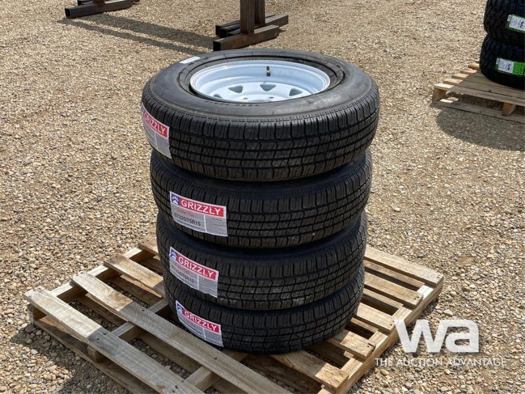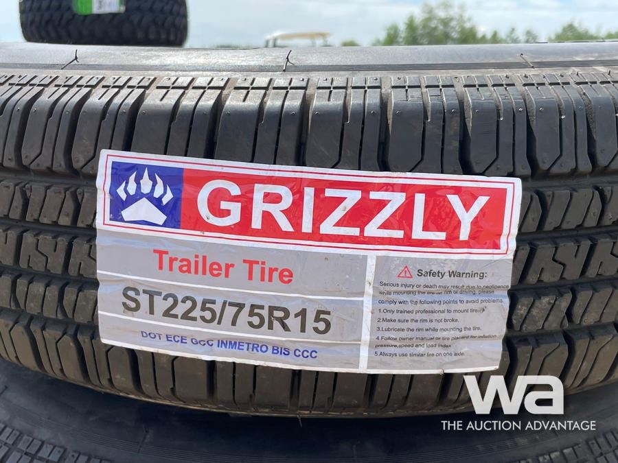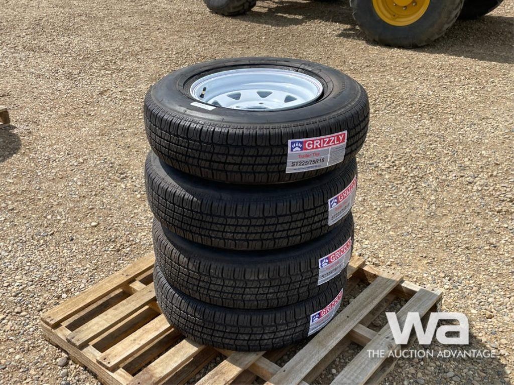 (4) GRIZZLY ST225/75R15 TRAILER TIRES & RIMS