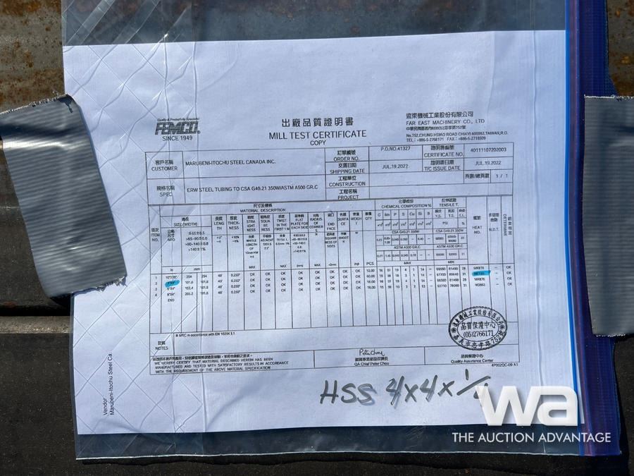 (4) HSS 4X4X1/4" 40 FT. LENGTH STEEL TUBING