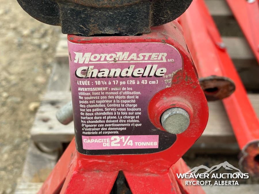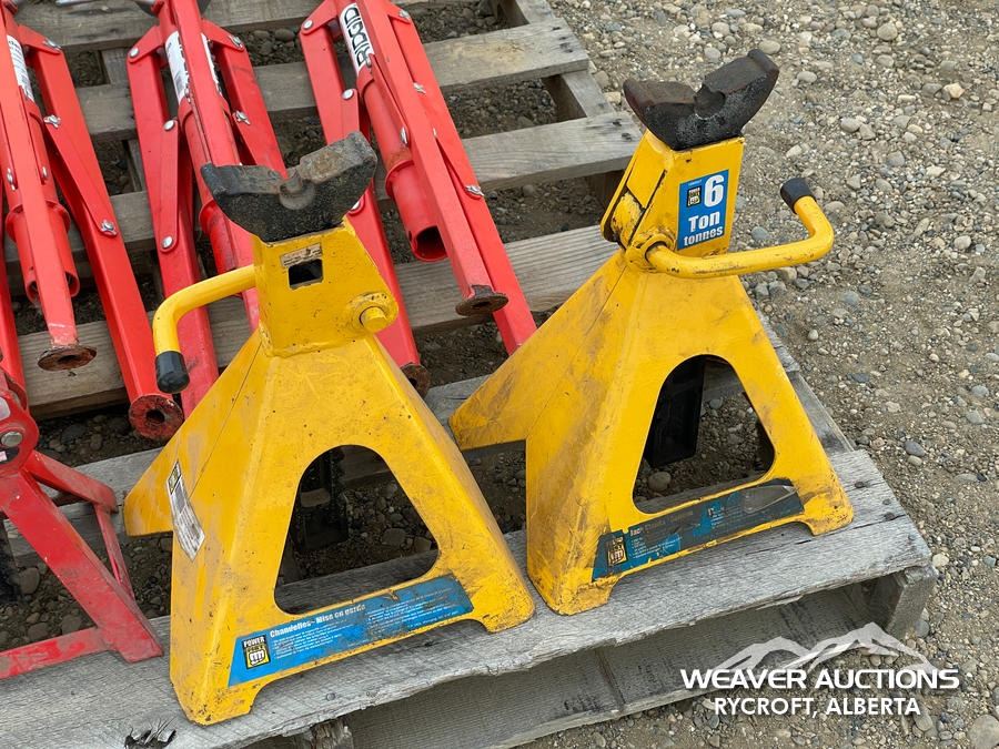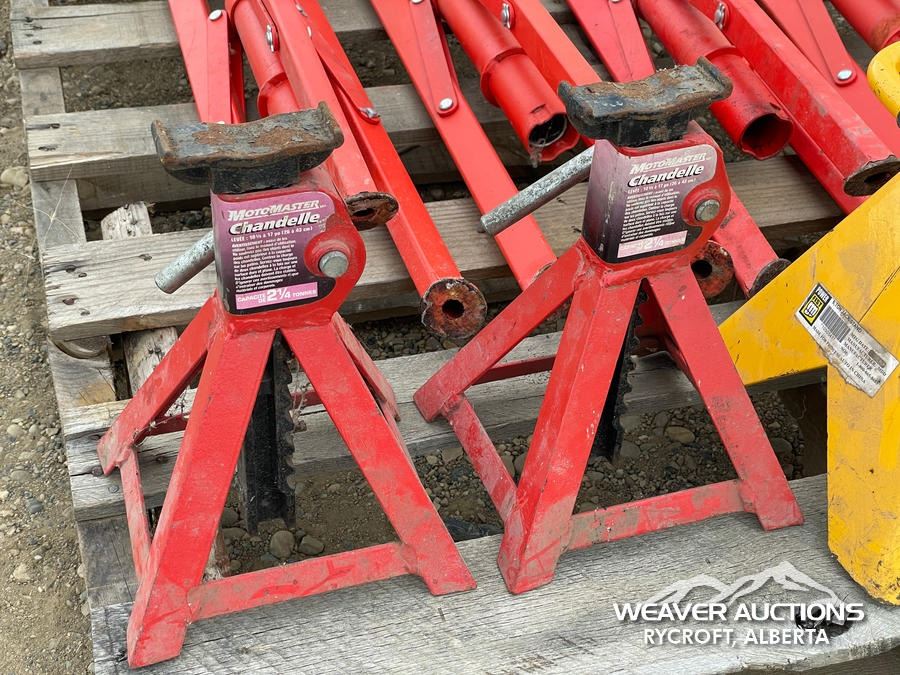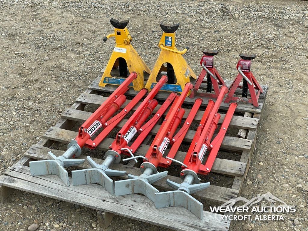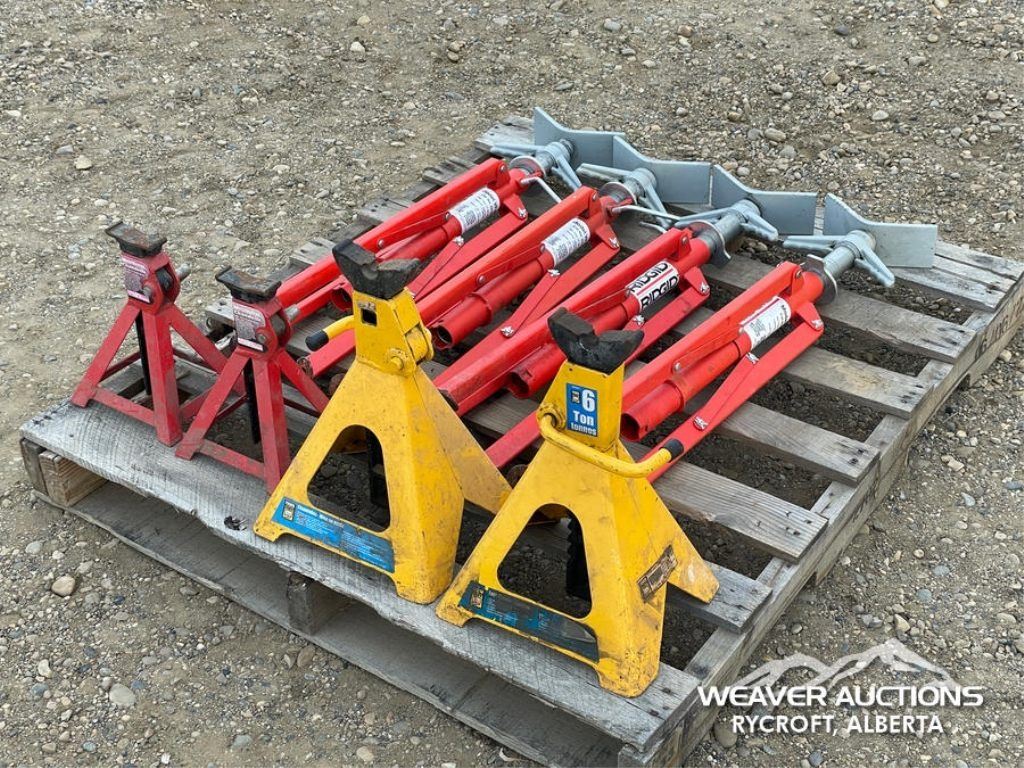 Specifications: (2) 6 TON JACK STANDS, (2) MOTOMASTER 2 TON JACK STANDS, 2500 LB. RIDGID PIPE STANDS