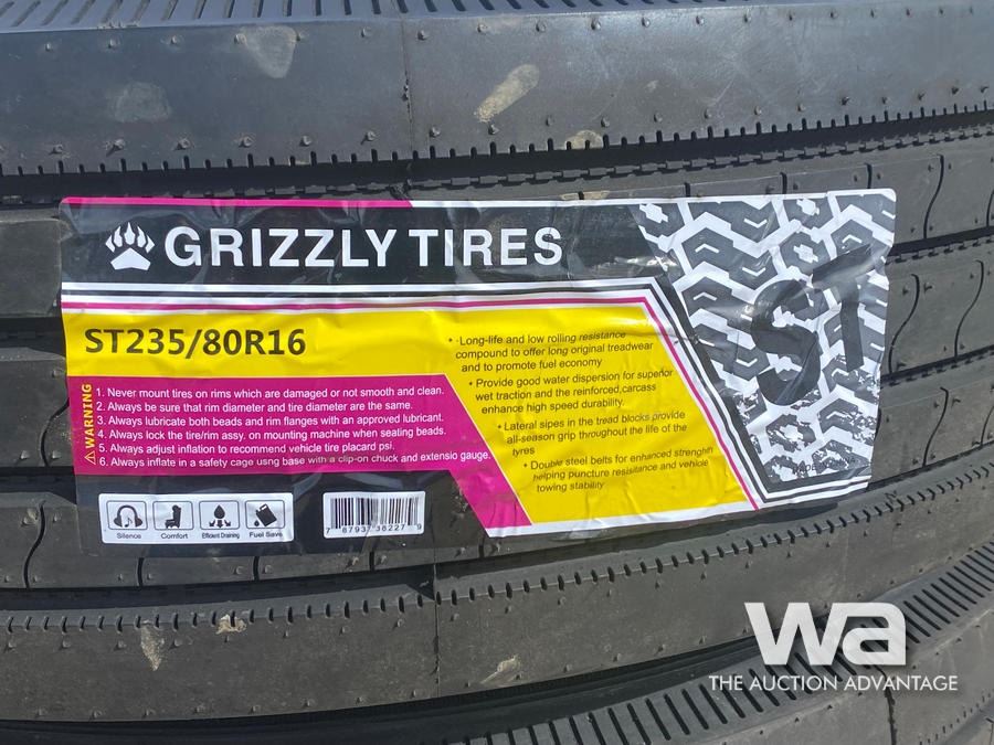 (4) ST235/80R16 GRIZZLY TIRES & RIMS