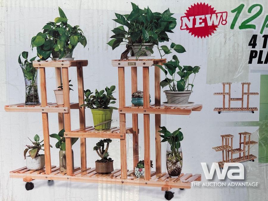 4 TIER WOODEN PLANT STAND & WHEELS