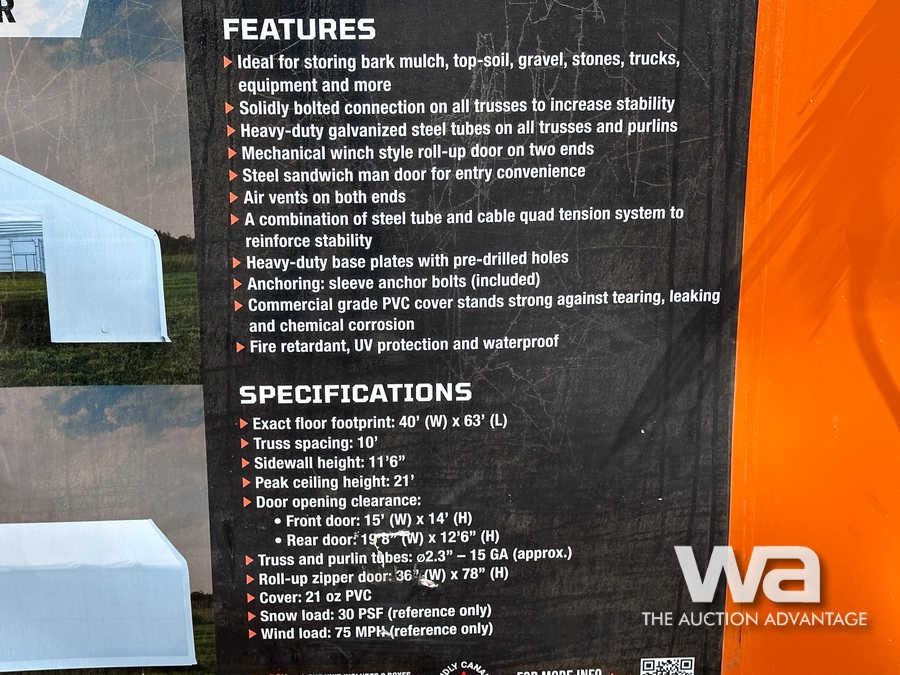 40 X 60 FT. DUAL TRUSS STORAGE SHELTER