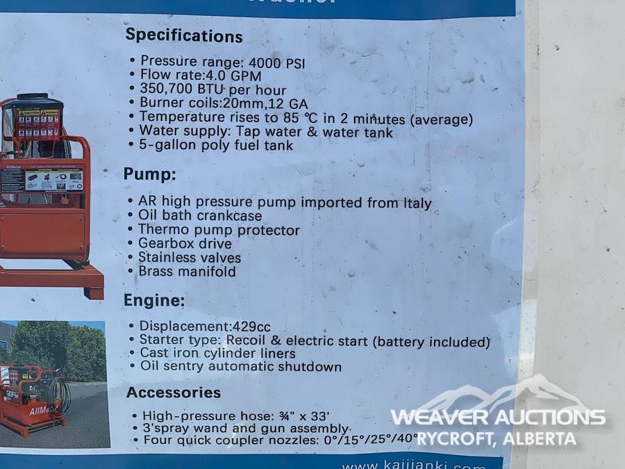 Specifications: *UNUSED, ELECTRIC START, 5 GALLON POLY FUEL TANK, ON SKID