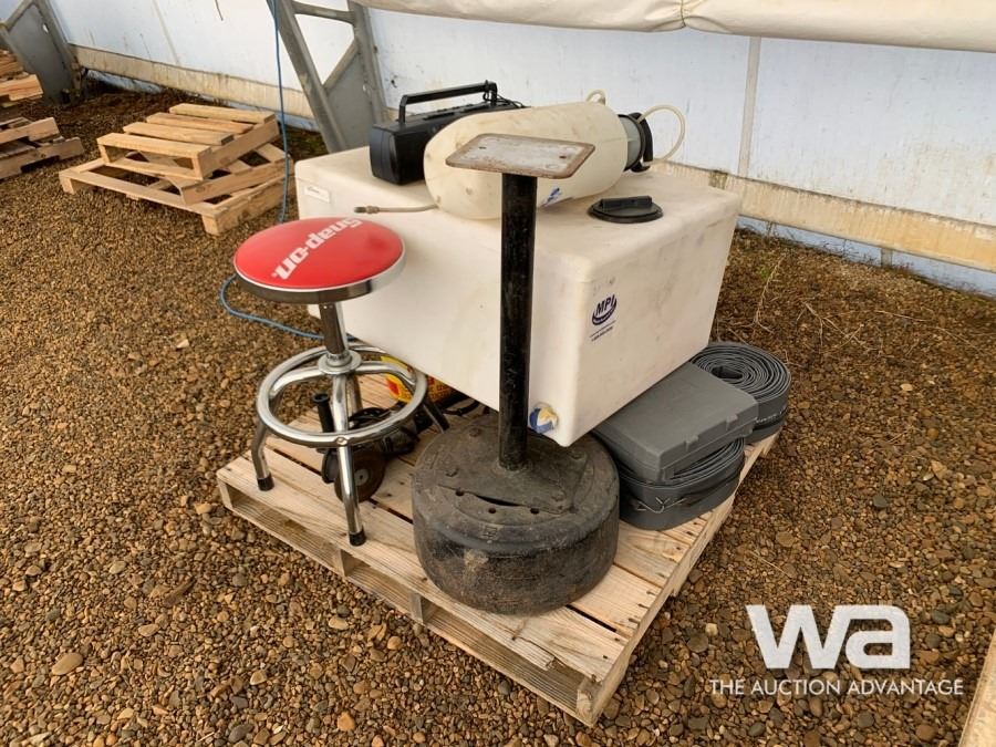 50GAL POLY TANK, GRINDER STAND, 3" WATER LINE