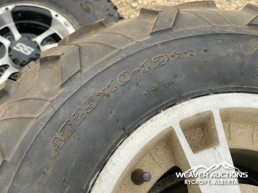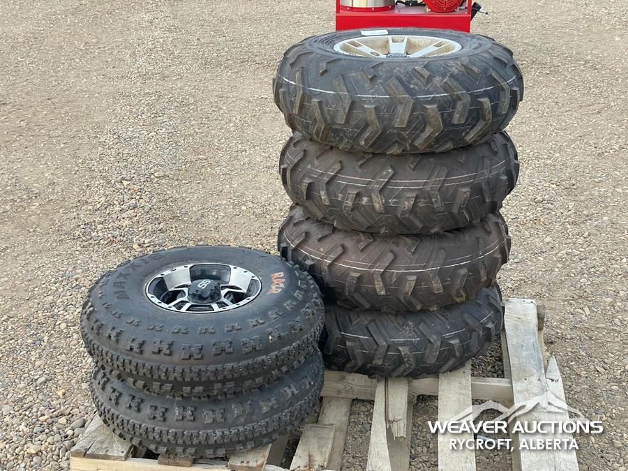 Specifications: (4) DUNLOP AT25X10-12 ATV TIRES, (2) MAXXIS AT23X 7.10 ATV TIRES