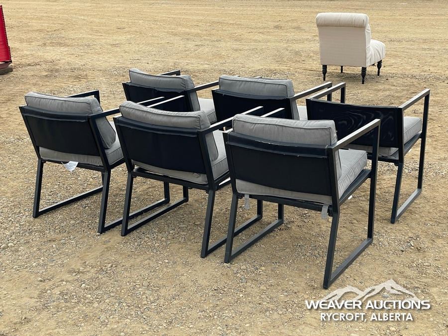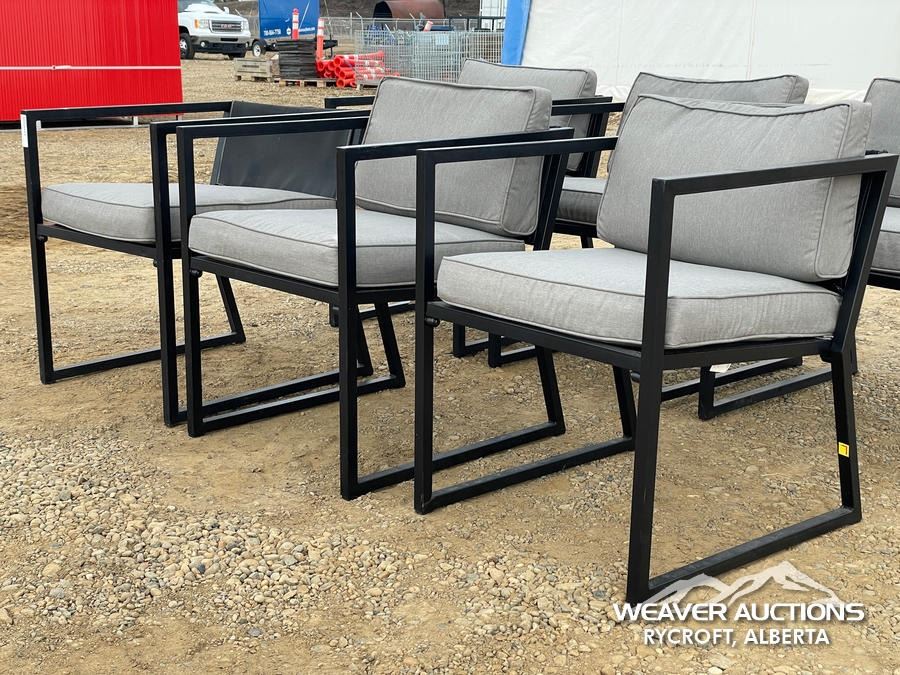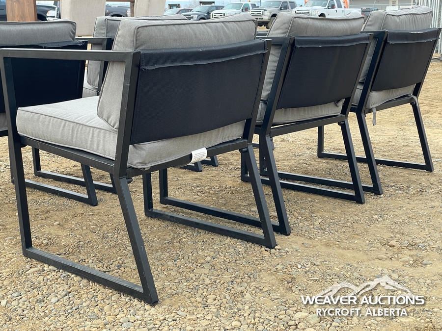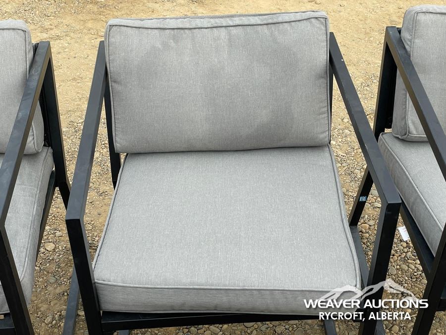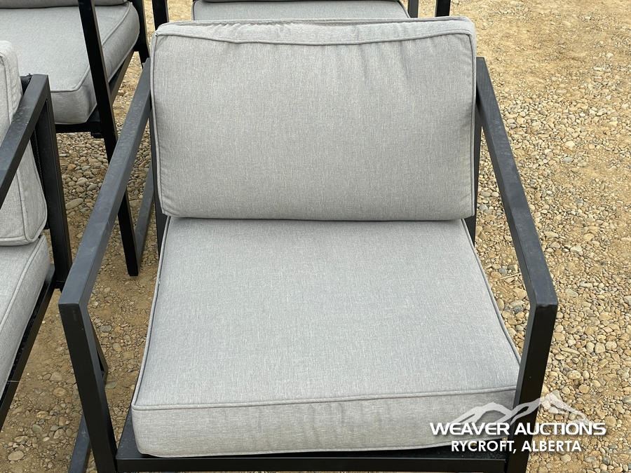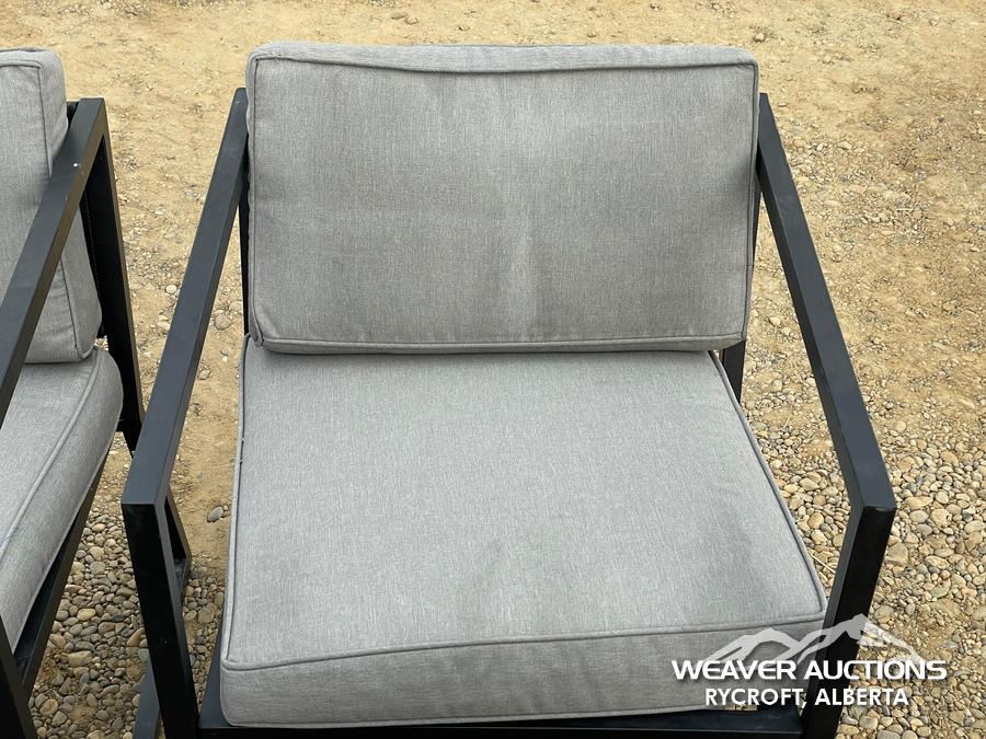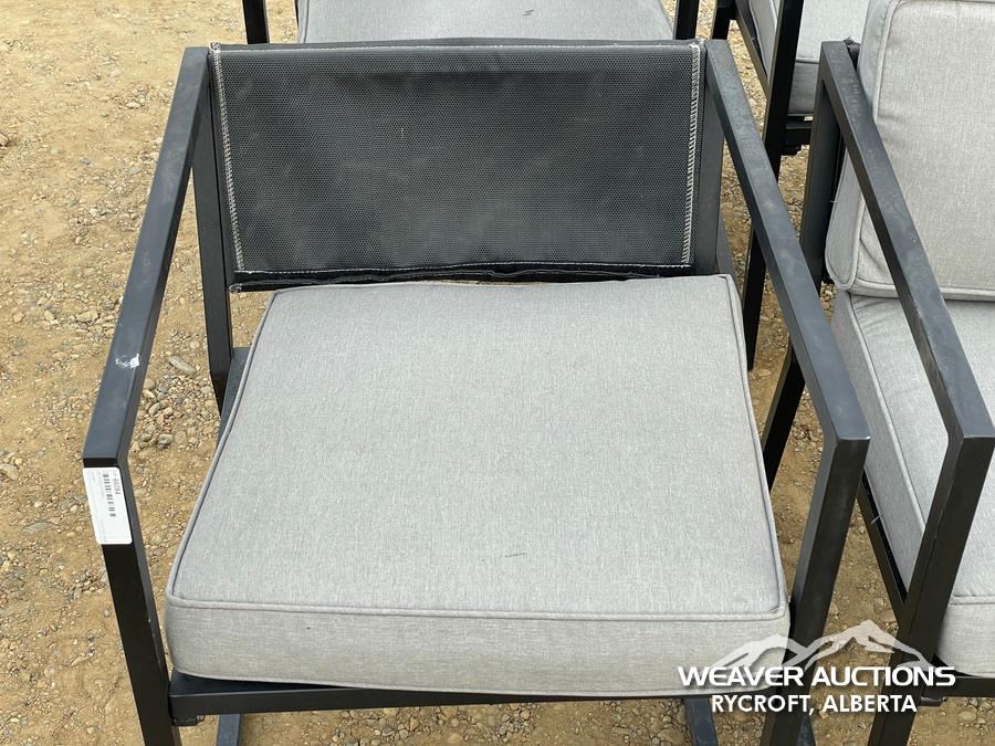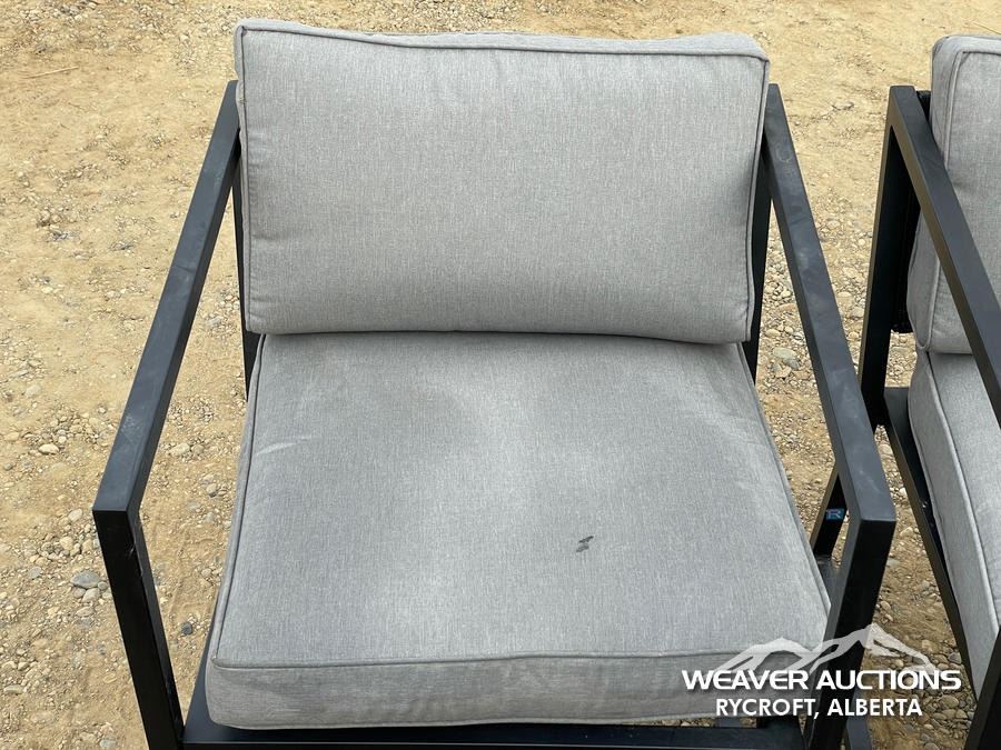 Specifications: *(1) MISSING CUSHION, BLACK FRAME, GREY CUSHIONS