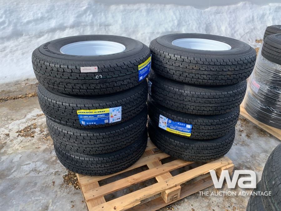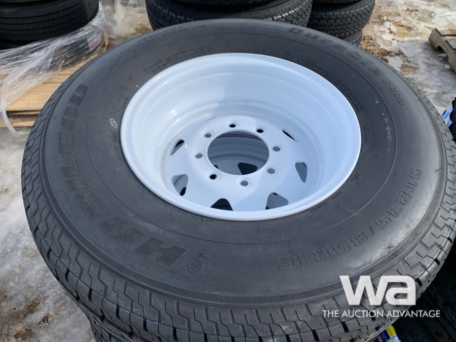 (8) ST235/85R16 TRAILER TIRES & RIMS