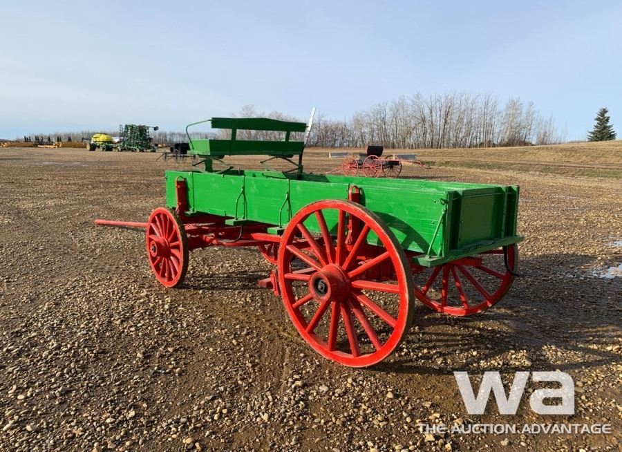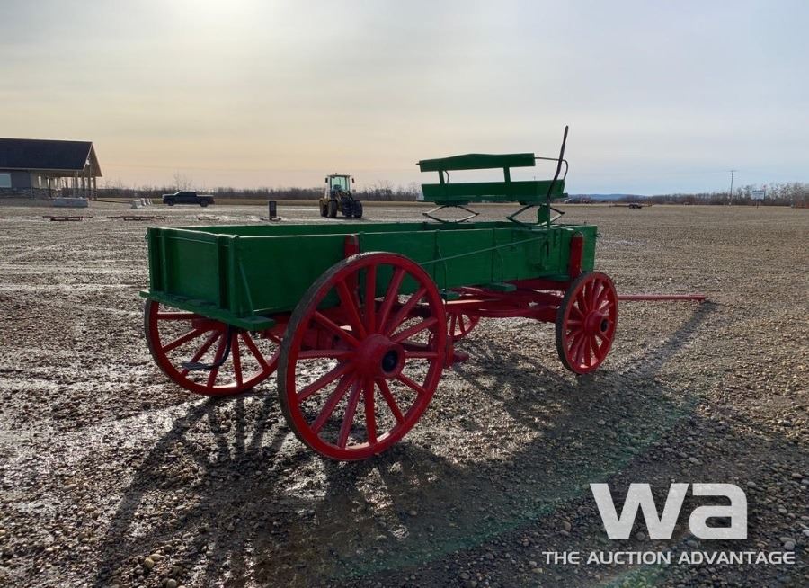 GREEN/RED, 16" X 12 FT. BOX, NEW SPRING SEAT, BRAKES, STEEL POLE