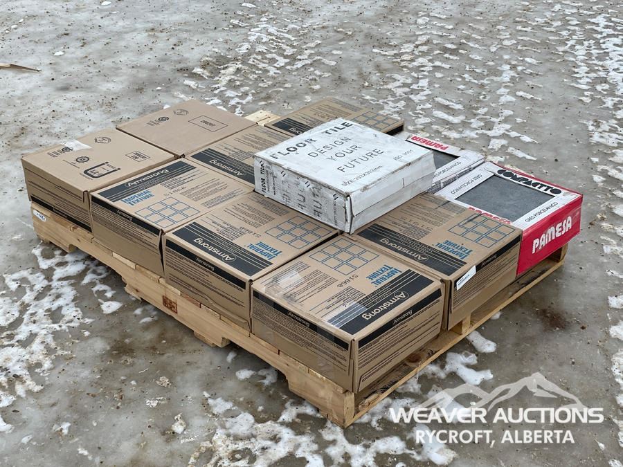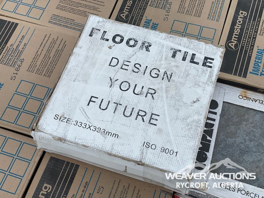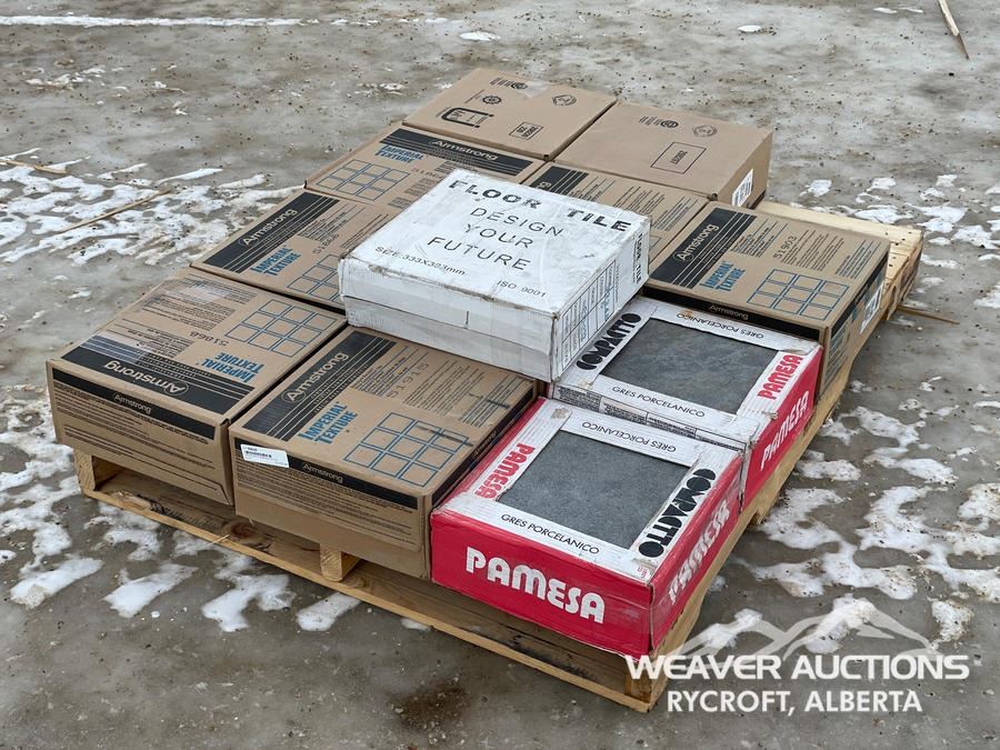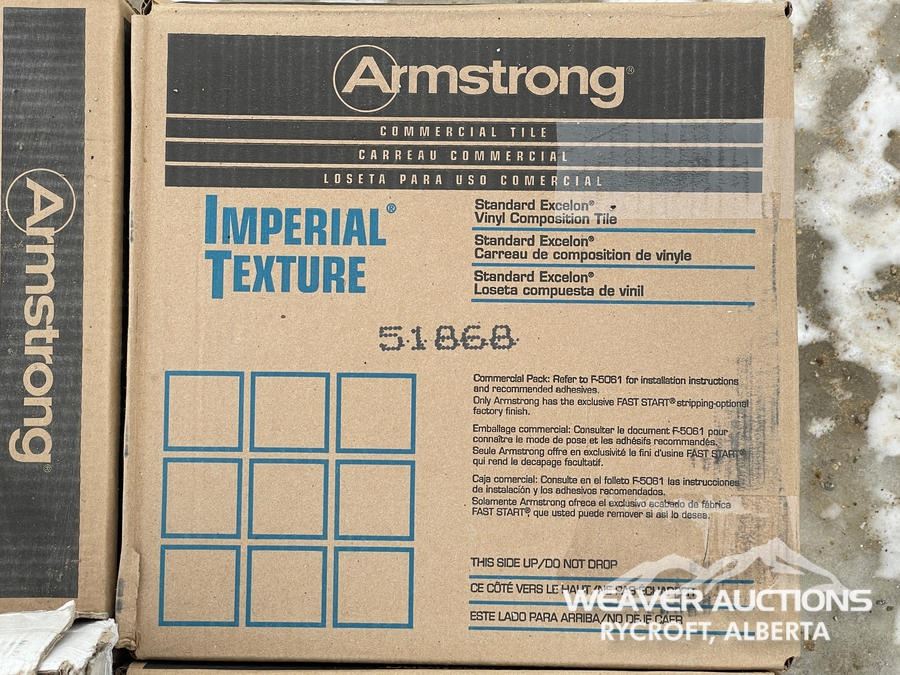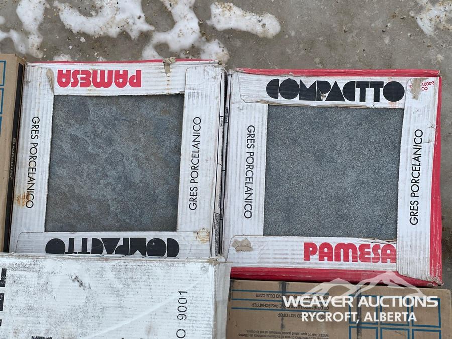 Specifications: (9) ARMSTRONG COMMERCIAL VC TILE BOXES, (2) PAMESA TILE BOXES, (1) MISC BOX