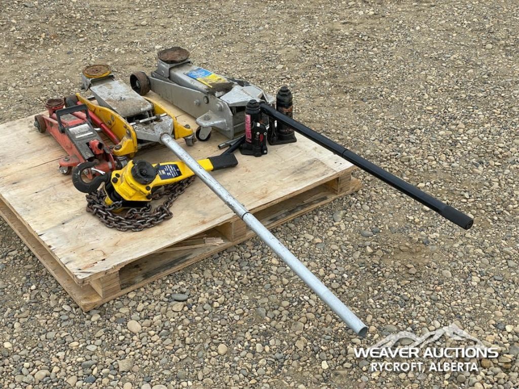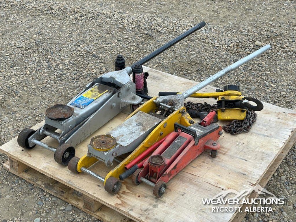 Specifications: (3) FLOOR JACKS, (2) BOTTLE JACKS, (1) CHAIN HOIST