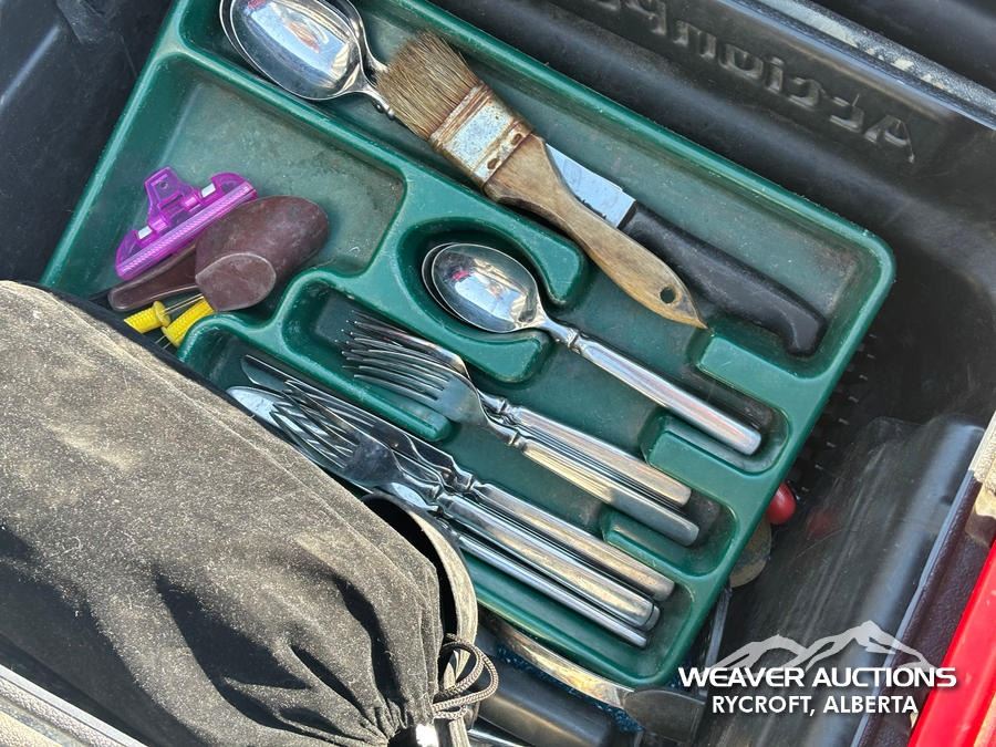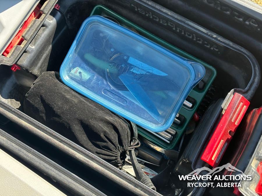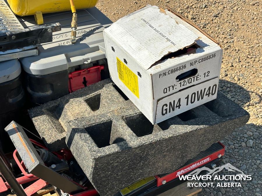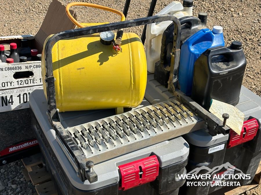 Specifications: TOOLS, WHEEL CHUCKS, AIR COMPRESSOR, JACK ALLS, HITCH, ASSORTED FLUIDS