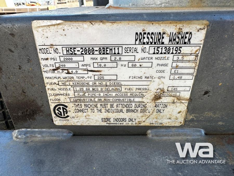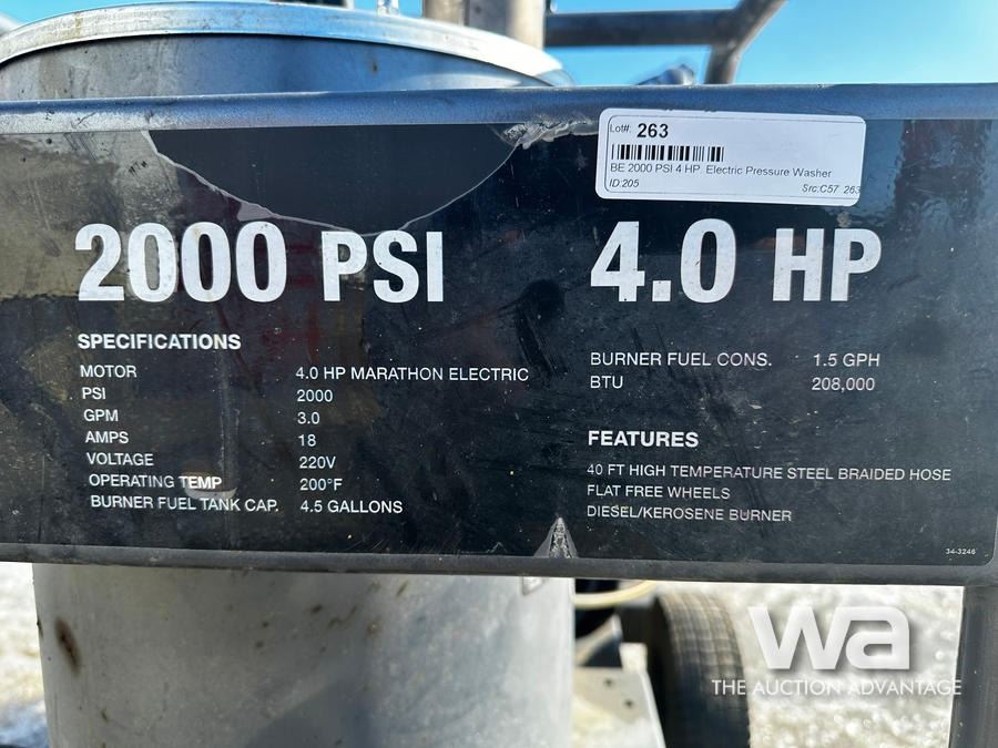 BE 2000 PSI 4 HP. Electric Pressure Washer